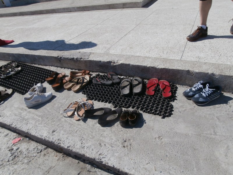 Поднимаясь к ступе, следует снимать обувь.