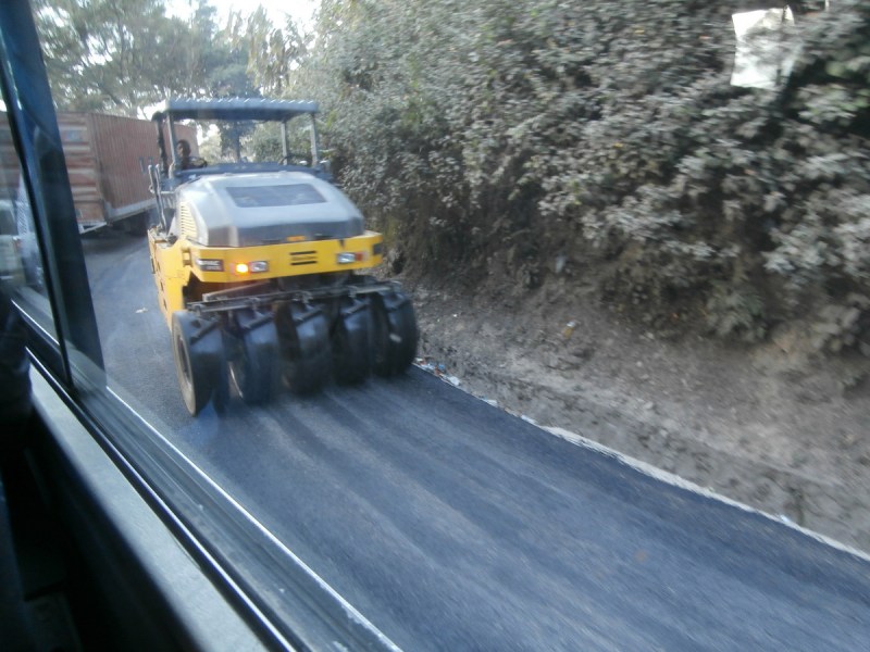 Но тут в разгар планирования «похода» в Катманду лед тронулся. Мы начали двигаться вперед. Двигались хоть и медленно, но более менее систематически. Выехали на подъем, и тут я поняла причину затора — дорогу ремонтировали и для движения оставили одну полосу. Вот и пропускали по очереди то наше направление, то встречное. В моменты пережидания встречного потока я развлекалась тем, что рассматривала пассажиров проезжающих мимо нас автобусов. Мы-то стояли, не двигаясь, и можно было рассмотреть пассажиров вблизи, а это было действительно интересно.