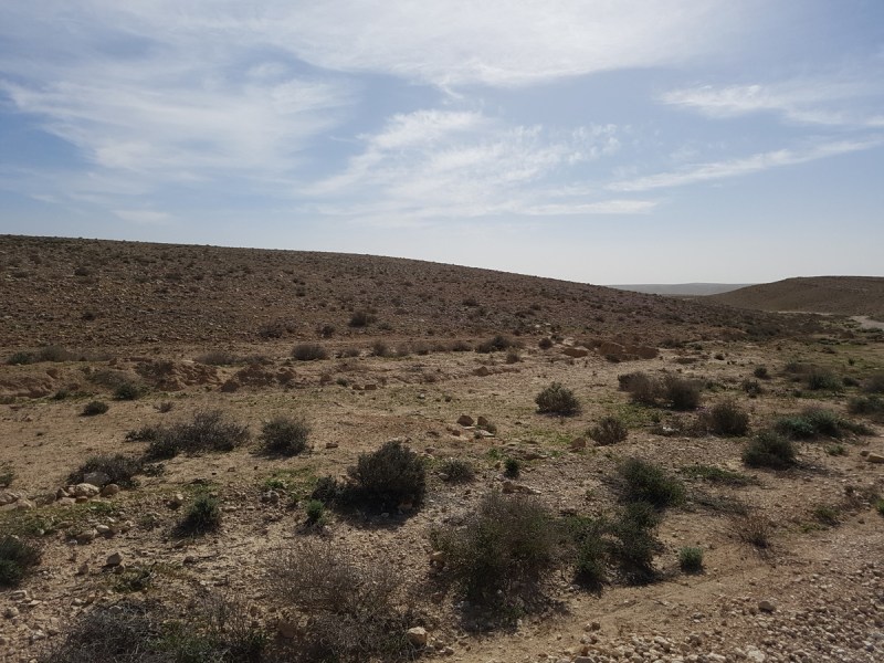 Пройдя по безымянному нахалю, мы достигли перекрёстка и повернули направо на синюю джиповку, идущую вдоль русла нахаля Арод. Вдали уже был виден ханьон лайла Ар Идо. До него оставалось каких-то полтора километра.