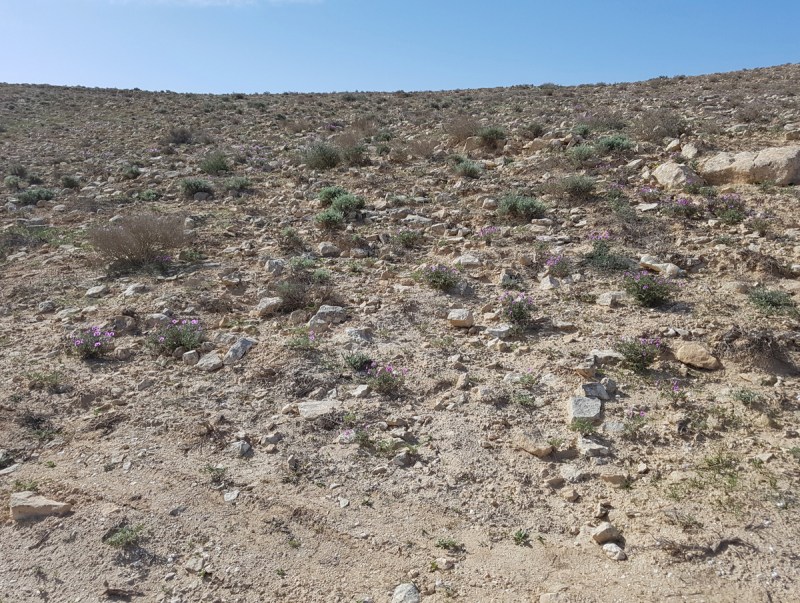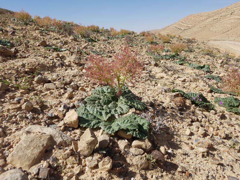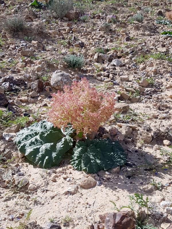 Во-вторых, именно сейчас, в середине марта, там цветут пустынные ривасим (ריבס המדבר, по-русски — ревень), и в разгар цветения целые склоны покрыты пушистыми соцветиями. Их оттенки — от бордово-красного до нежно-розового и фисташково-зелёного. Зрелище впечатляющее. Может быть, в Негеве и есть другие места, где цветут ривасим, но в западной части Махтеша Рамон их тысячи, и это не может оставить равнодушным.
