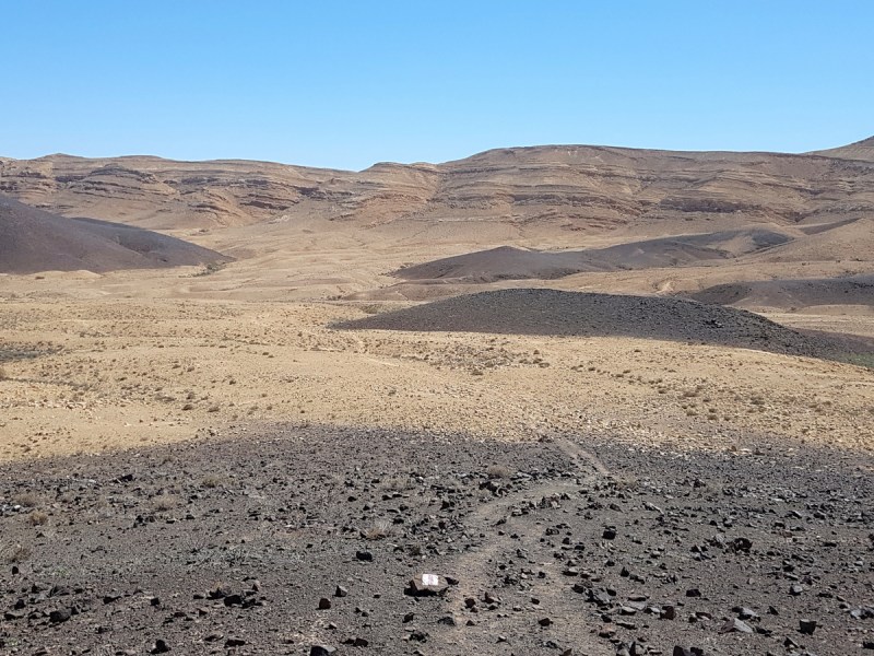 После пересечения красной тропы и чёрной джиповки начался длинный подъём из Махтеша Рамон на плато.
