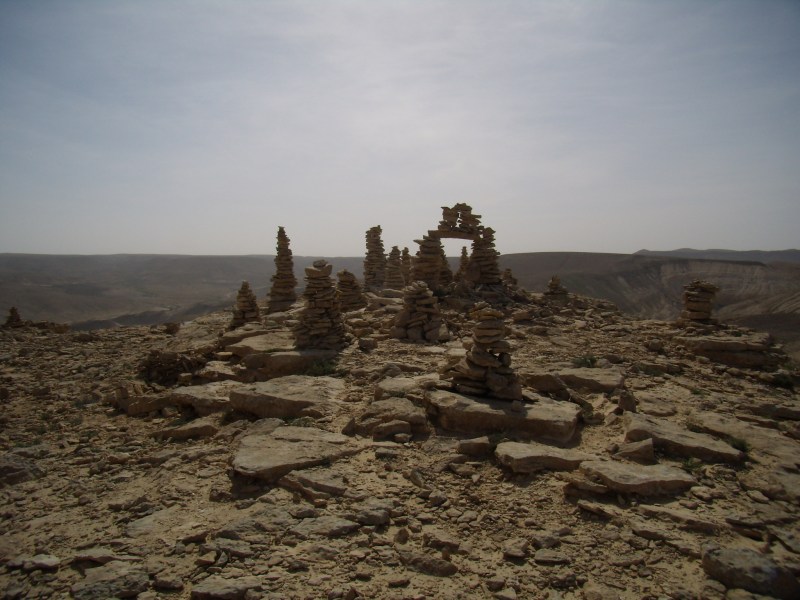 Преодолев несложный, хоть и длинный, но пологий, подъём по нахаль Элиав, мы дошли до конца нахаля, вернее, до его начала, поскольку шли вверх. Вышли из русла и увидели впереди башенку из камней. Нам — туда. Заключительный взлёт по тропе — и мы на горе Лоц.