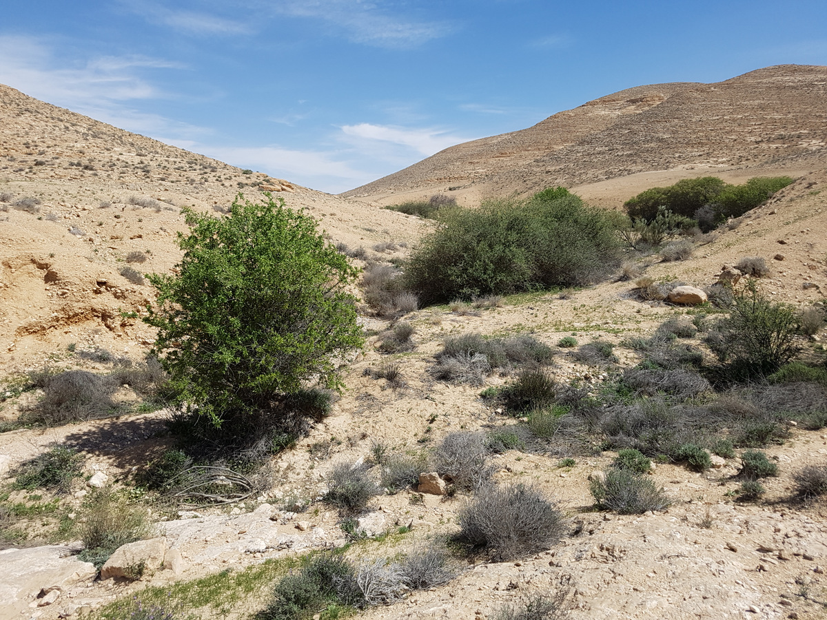 12 марта, 2018 • 1200 × 900 • Махтеш Рамон, западная часть. Первозданная природа и цветение ривасим. Нахаль Элиав с его богатой растительностью.