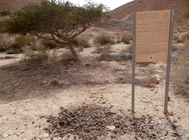 Щит в район источника Эйн Орхот. Раньше сюда вход был запрещён, и за нарушение можно было получить штраф. А теперь, надо же — добро пожаловать! (Так написано на щите.) Времена меняются к лучшему 🙂 .