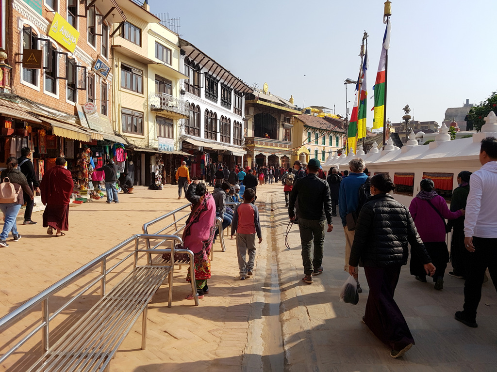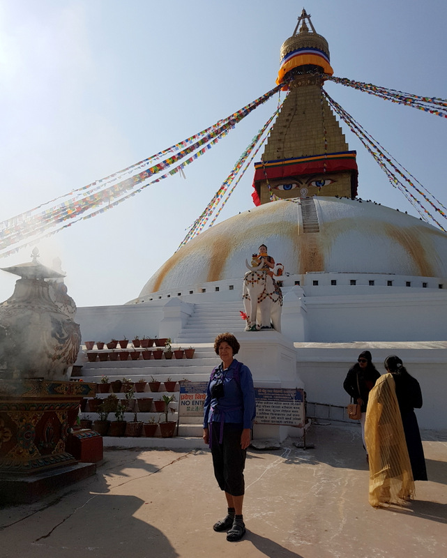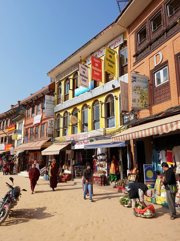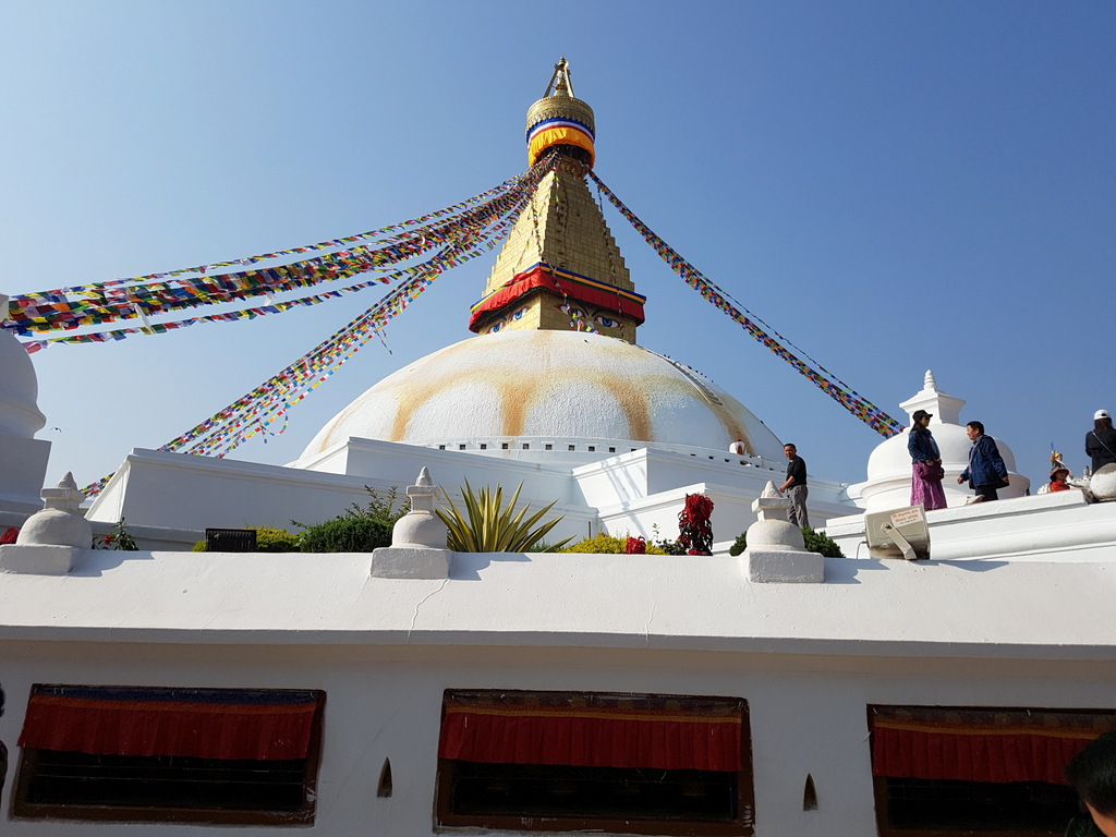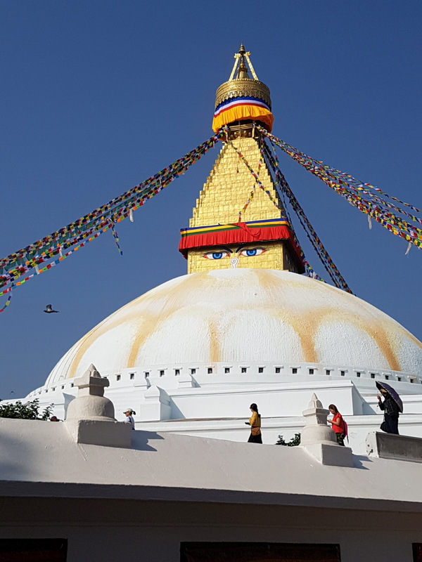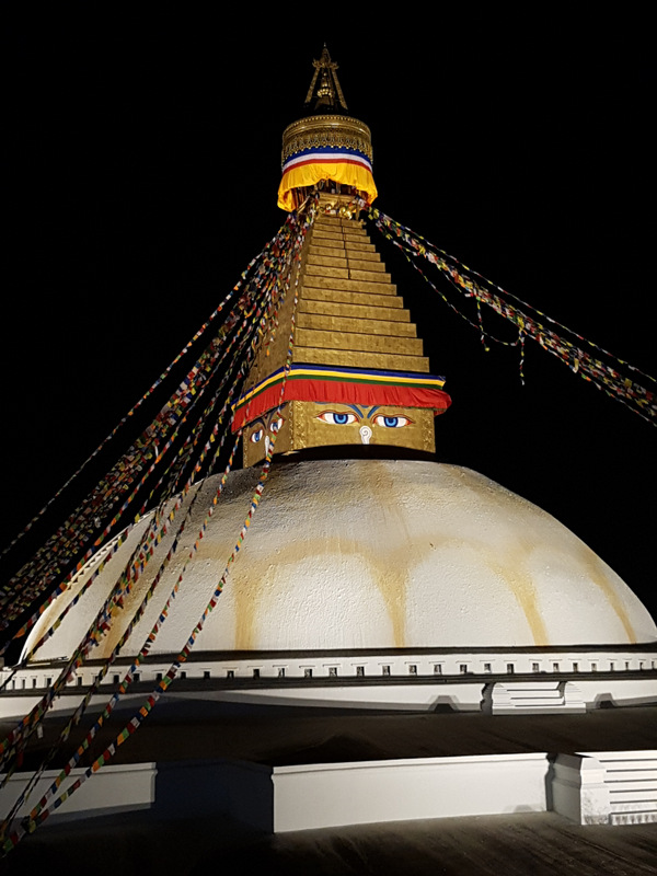 Огромная ступа Боуднахт находится в нескольких метрах от окон гостиницы, можно достать её рукой 🙂 . Я в восторге, чувствую, что место это особое, знаковое, с сильной энергетикой. Просто счастье здесь остановиться!