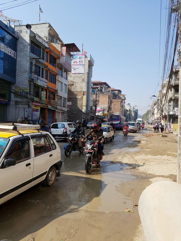 Затем мы вышли за пределы Ступы и пошли по раздолбанной широкой улице. Смотрели на настоящий, не туристический Катманду, и впечатления были не из радужных — кругом грязь, пыль, пробки на дорогах, дома непонятно какие, но точно — не красивые. … Люди, правда, весёлые и приветливые. Едут в переполненных автобусах, делают покупки в бесчисленных магазинчиках. Людей очень много, также, как и машин, и мотоциклов. Катманду живёт своей, неведомой нам жизнью.