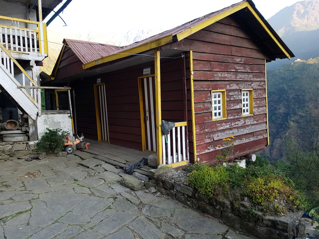 Лодж в Пхакдинге. Называется «Кала Паттар». Лодж симпатичный, добротный. Хозяева — шерпы (пожилая пара), очень солидные люди. Комнаты везде более менее одинаковые — кроме кроватей нет ничего. Обычно ещё есть крючки. Здесь были ещё и широкие подоконники на двух окнах. Также матрасы мягкие — сдвоенные. Душ нагревается от газовой колонки. Туалет с унитазом. Розеток нет. Вай фай неплохой — удалось выйти на связь с домом. Хозяева приятные и услужливые.