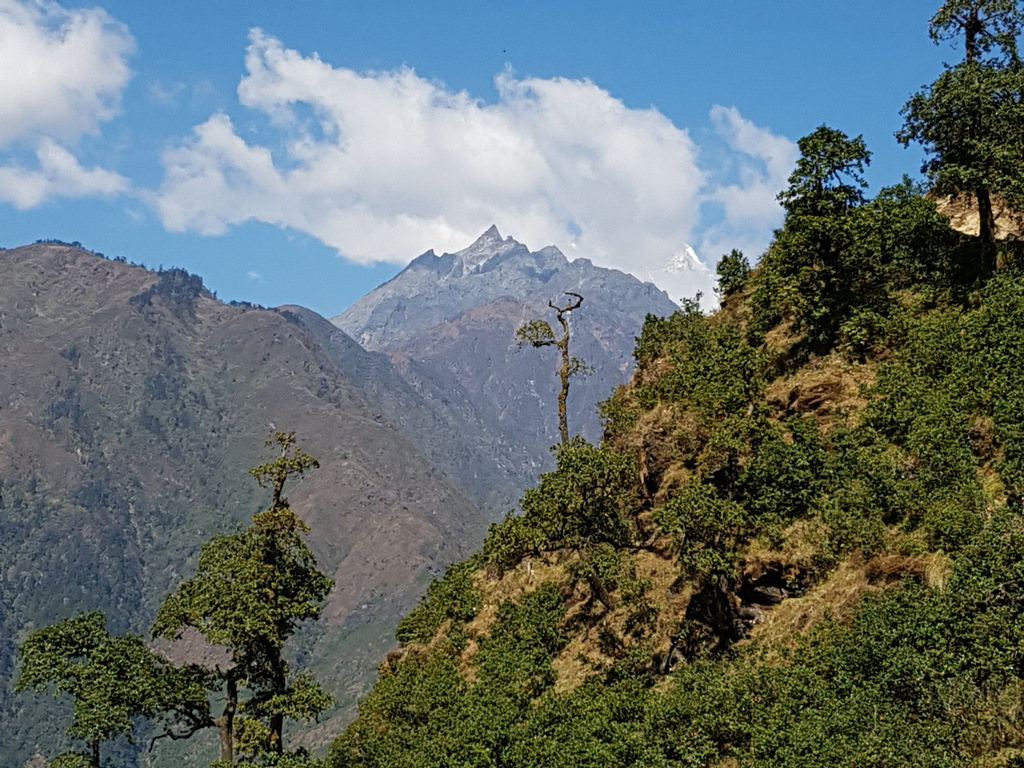 Мы, конечно, шли так медленно из-за меня. Да, должна сказать, что я заболела. Вот так действует на меня Непал. На второй день трека, в Нунтале, заболело горло, затем распух нос. Дышу с трудом. Интенсивно лечусь, поэтому чувствую себя сносно и могу продолжать трек.