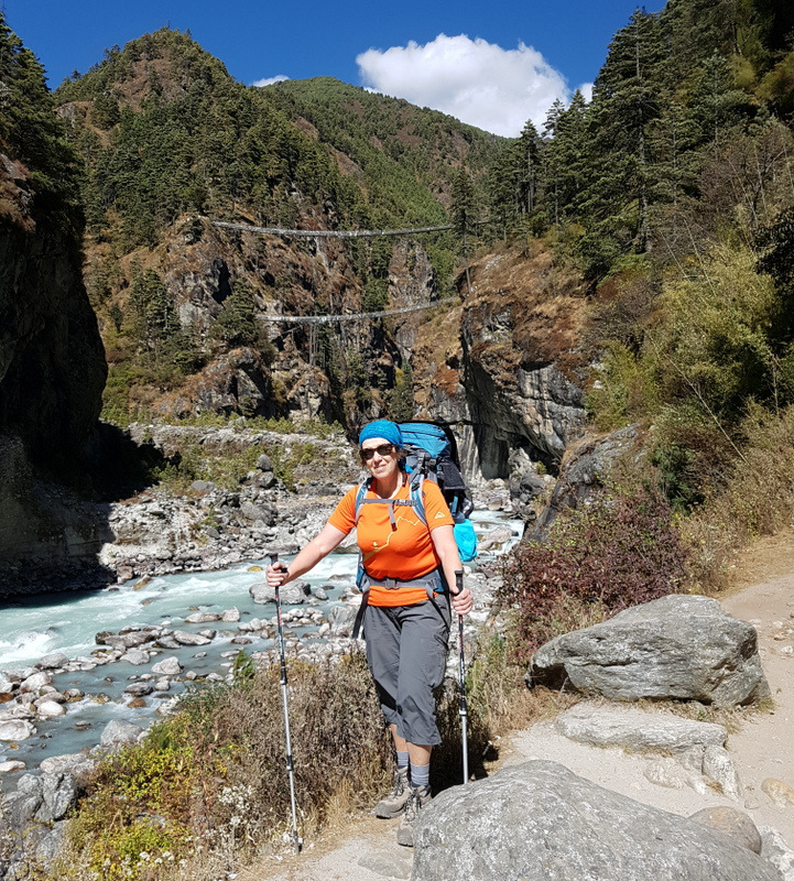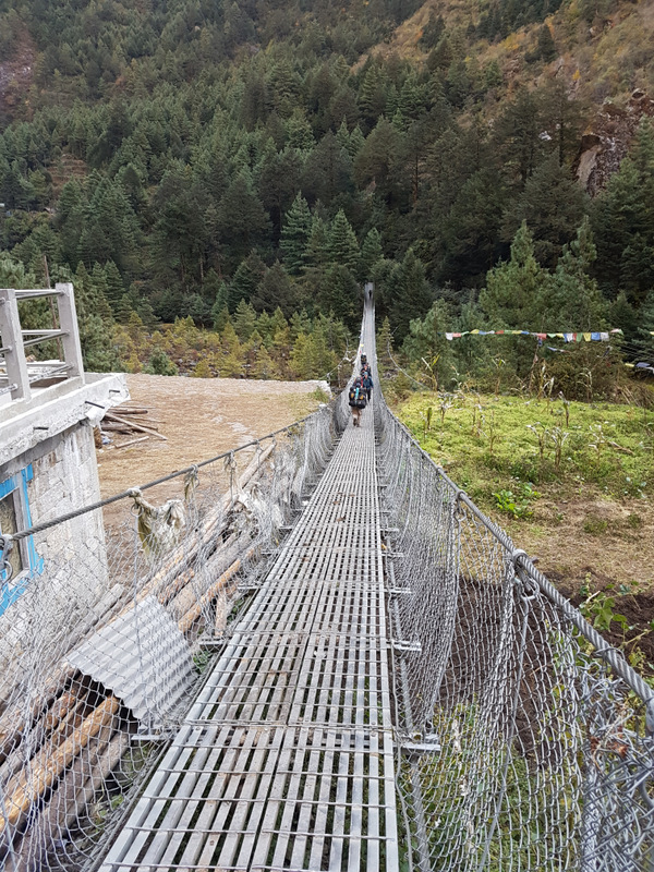 Сфотографировались с видом на мост, а как же иначе. Это знаковое место, символизирует приближение к столице шерпов Намче Базару.