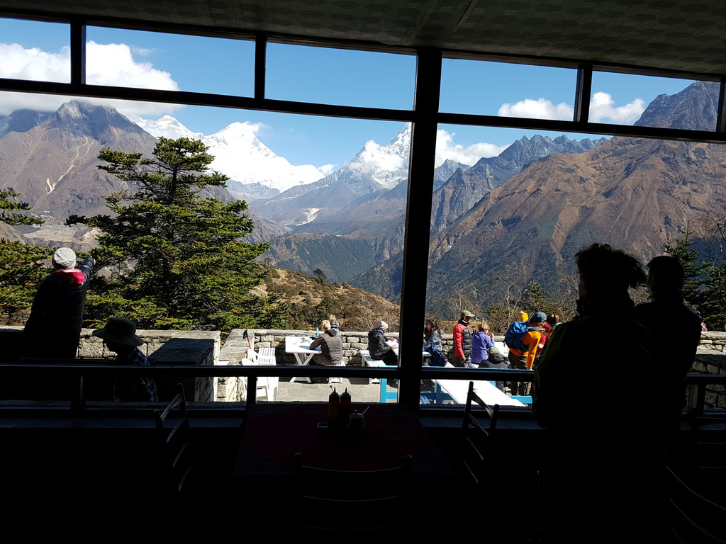 Затем мы пошли в знаменитый отель Everest View, где номера стоят 200$ за ночь, где в комнаты подаётся кислород и куда богатых японцев доставляют на вертолёте (правда, им от аэродрома до отеля нужно 45 минут идти пешком). Нас беспрепятственно пропустили внутрь, мы смогли побывать на балконе и ещё раз полюбоваться Эверестом.