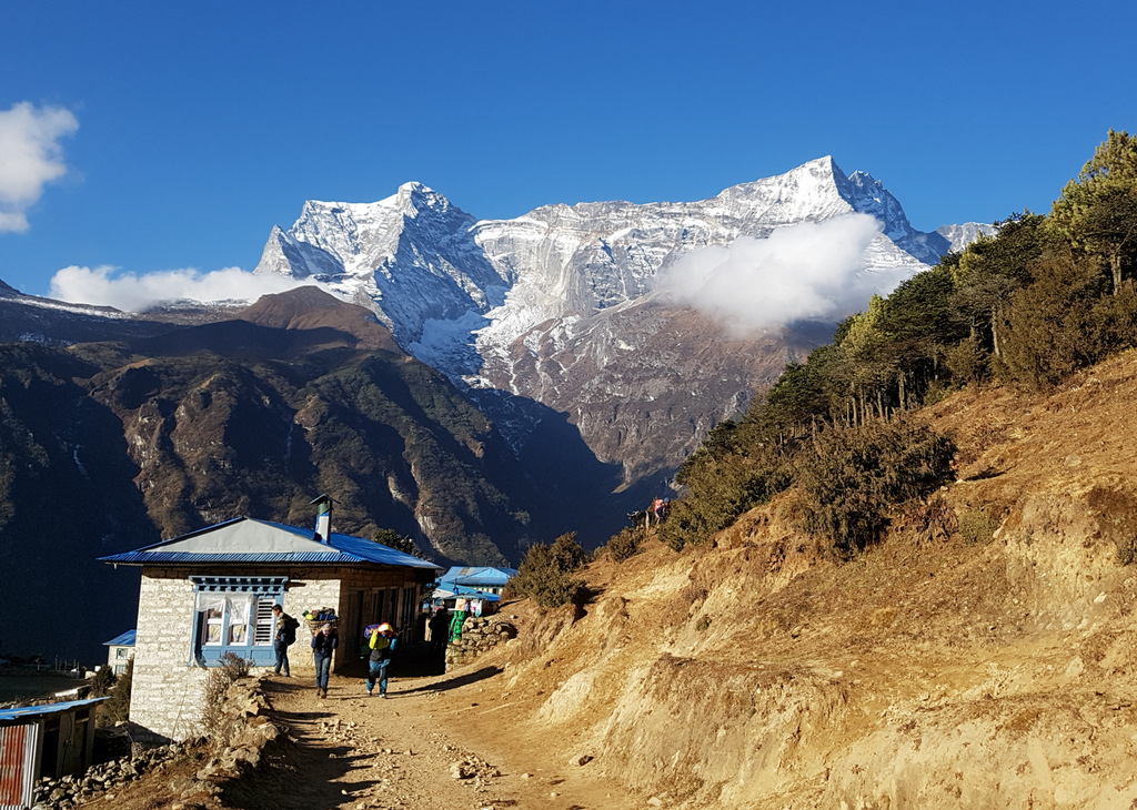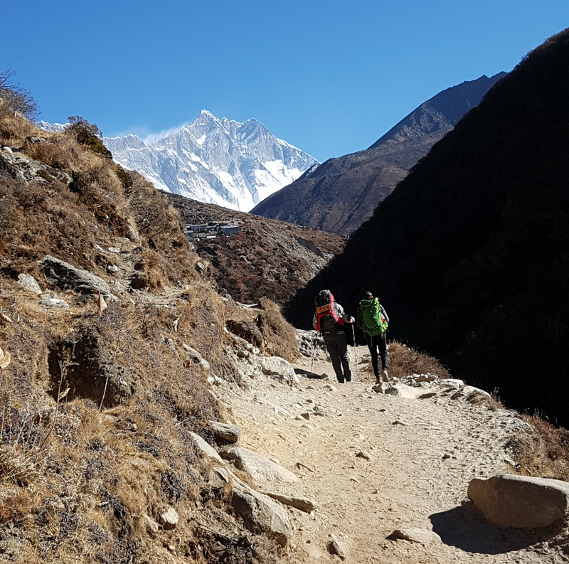 Основная толпа пошла в Тенгбоче, по тропе ЕВС (Эверест Бэйс Кэмп). Мы же, зная местность после тщательного изучения непальской ветки на форуме Винского, решили пойти по верхней тропе через Монг и Пхортце и сразу прийти в Пангбоче, минуя Тенгбоче. На этой тропе красивые виды и намного меньше людей. Поэтому на развилке мы повернули налево.
