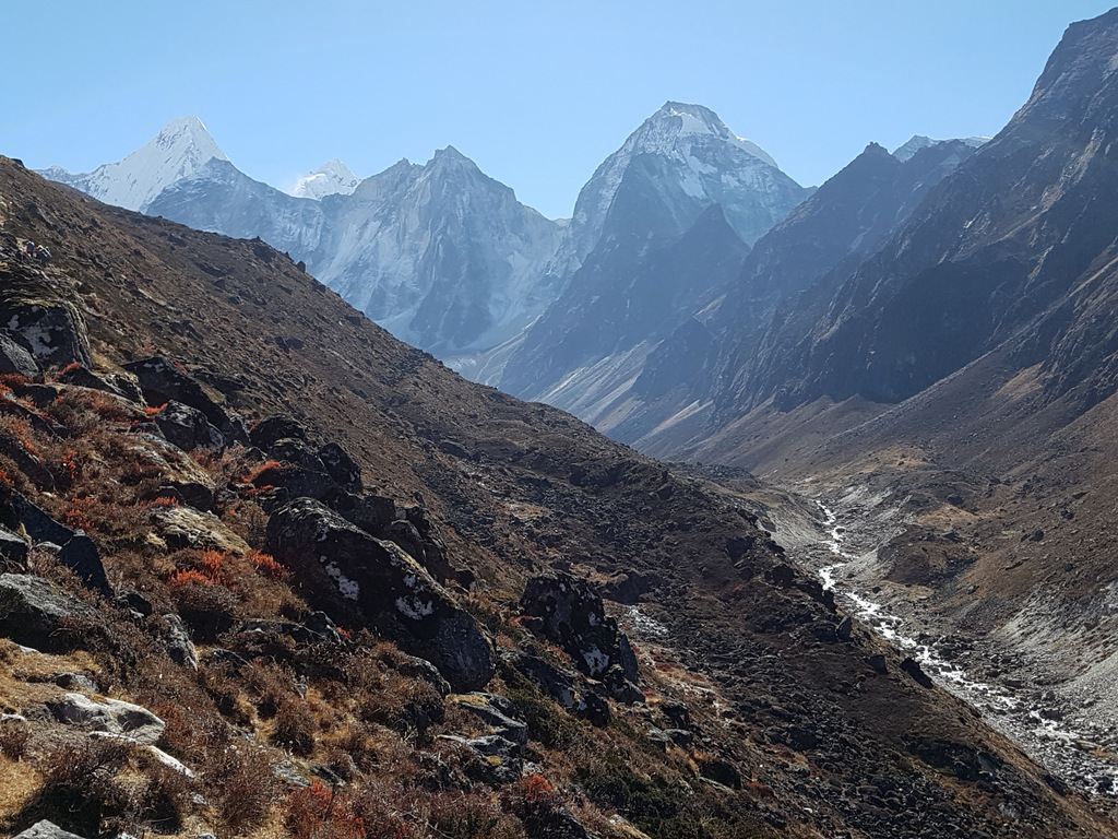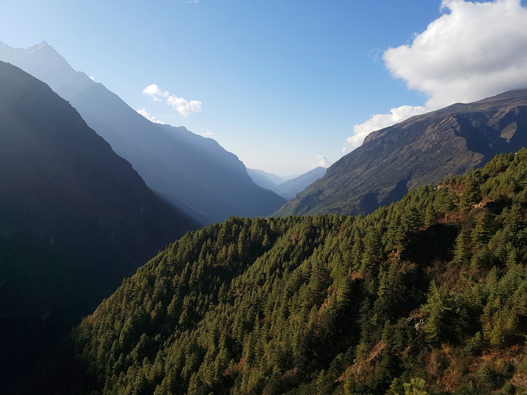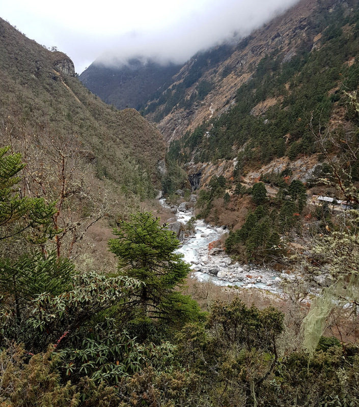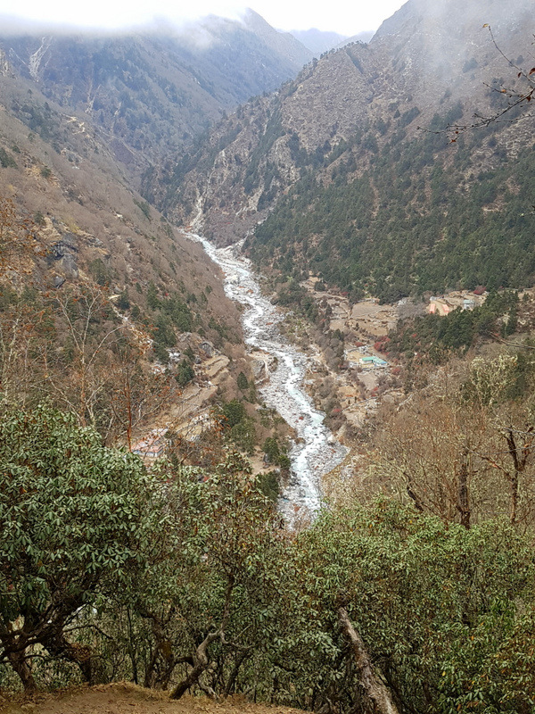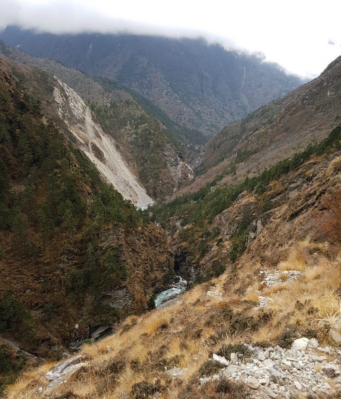 Ущелье Дудх Коши, взгляд назад на спуске из Монга.