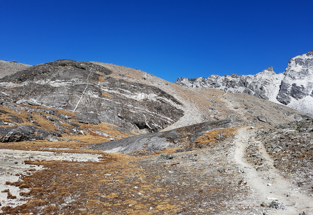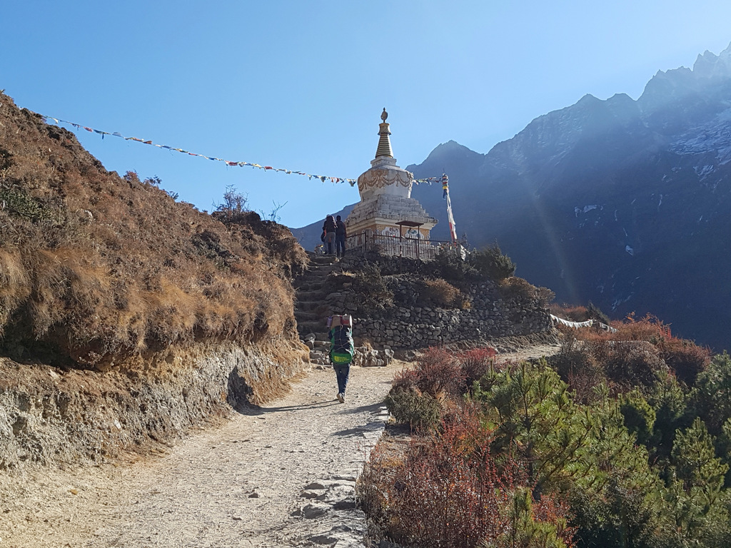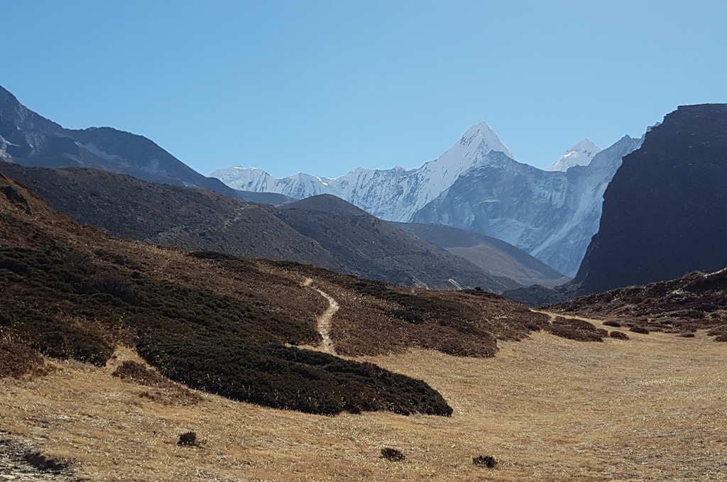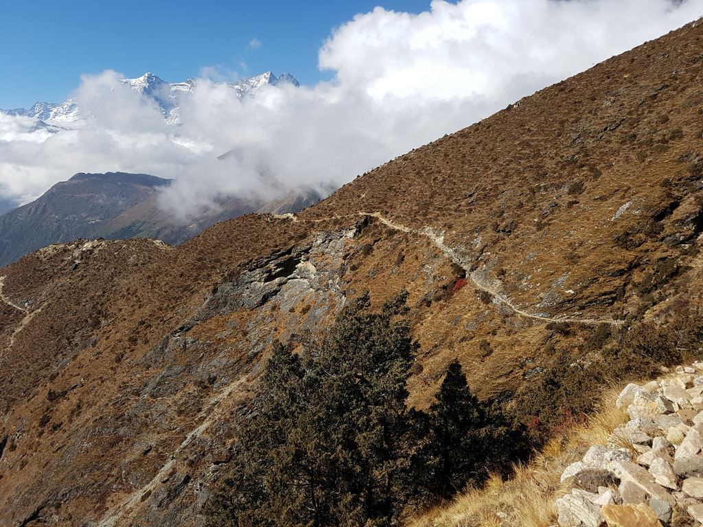За Пхортце, в середине небольшого подъёма есть развилка. Одна из троп идёт направо, и хочется пойти по ней, поскольку она спускается. Эта тропа ведёт в Тенгбоче, и нам туда не надо. Мы продолжаем подниматься.