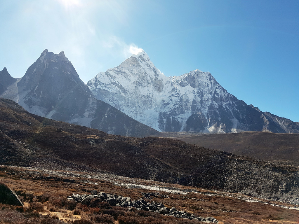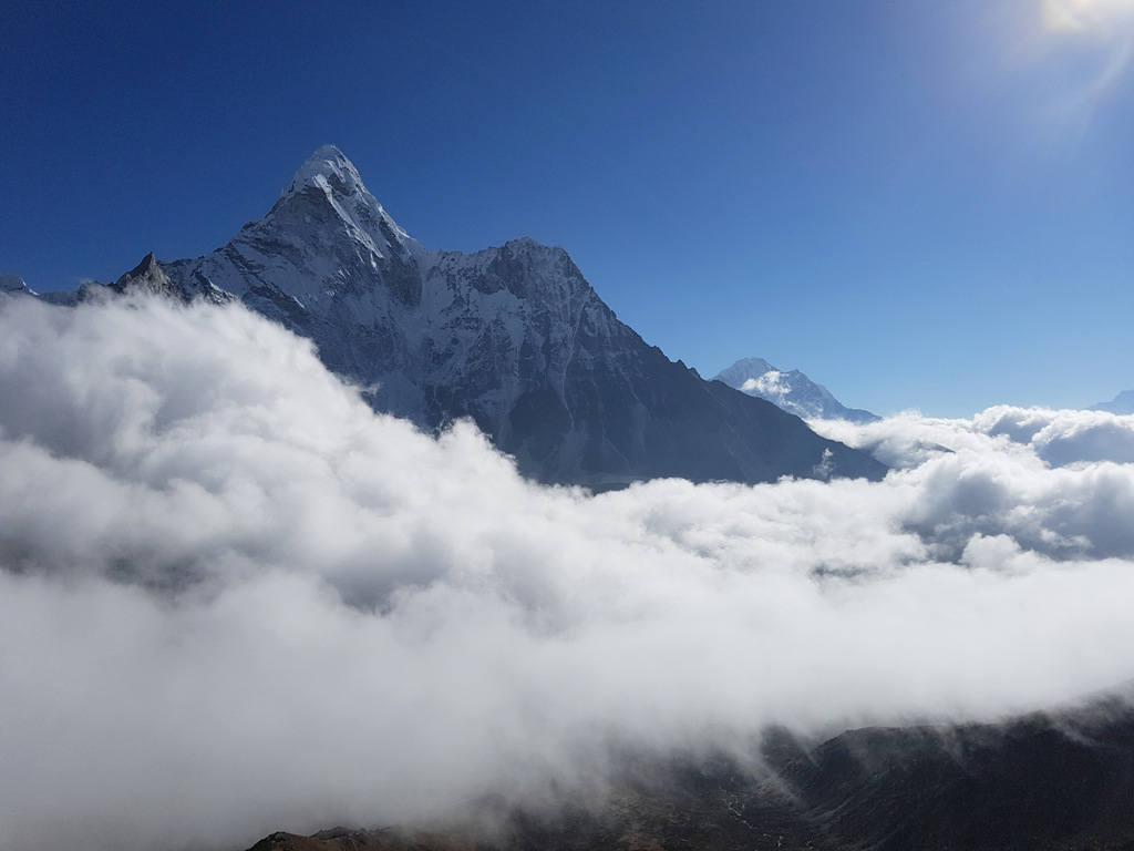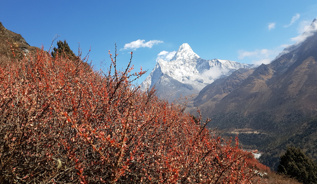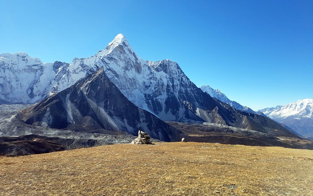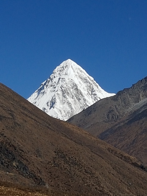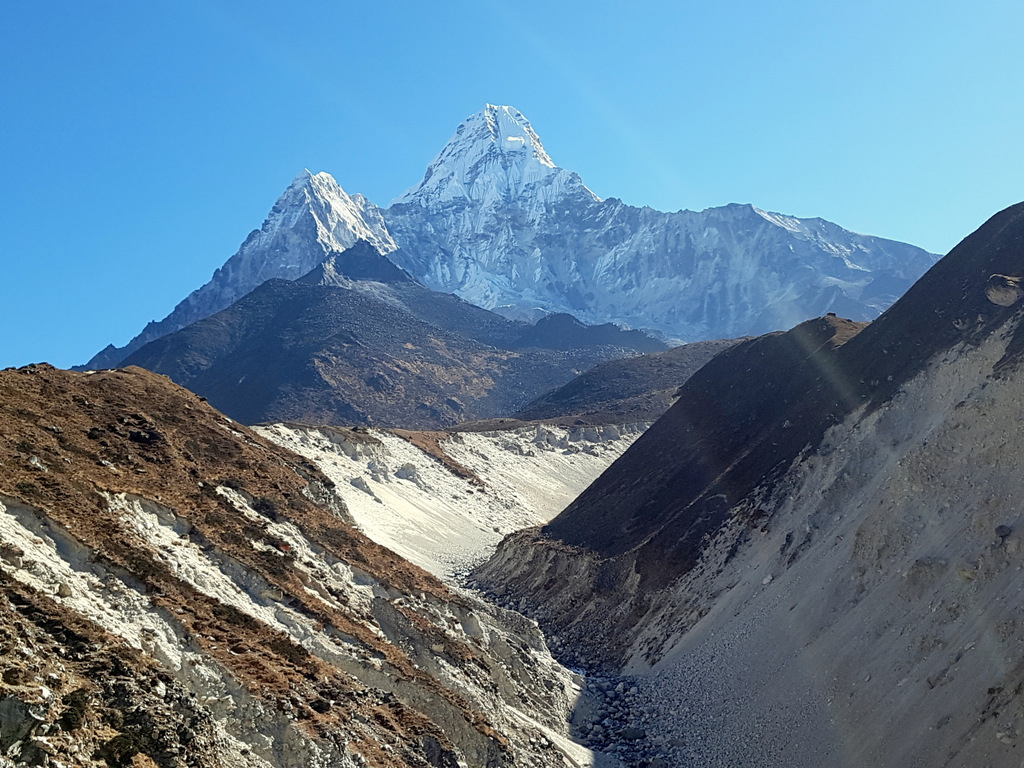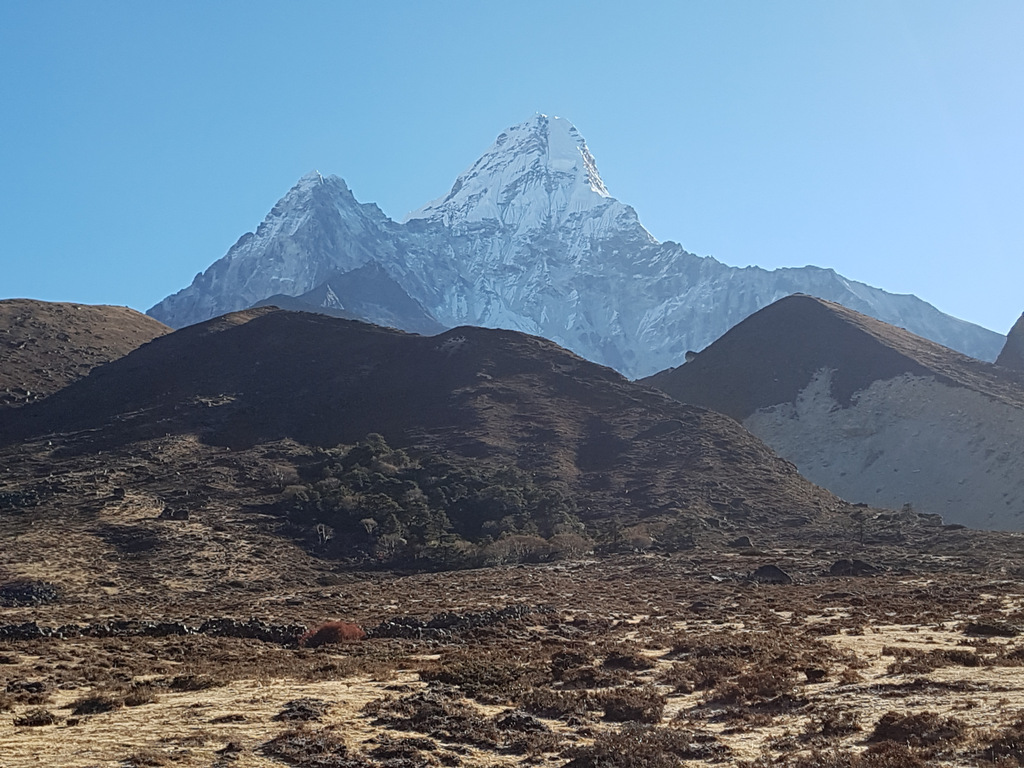 Перед глазами то и дело открывается вид на гору Ама Даблам. Гора — красавица!