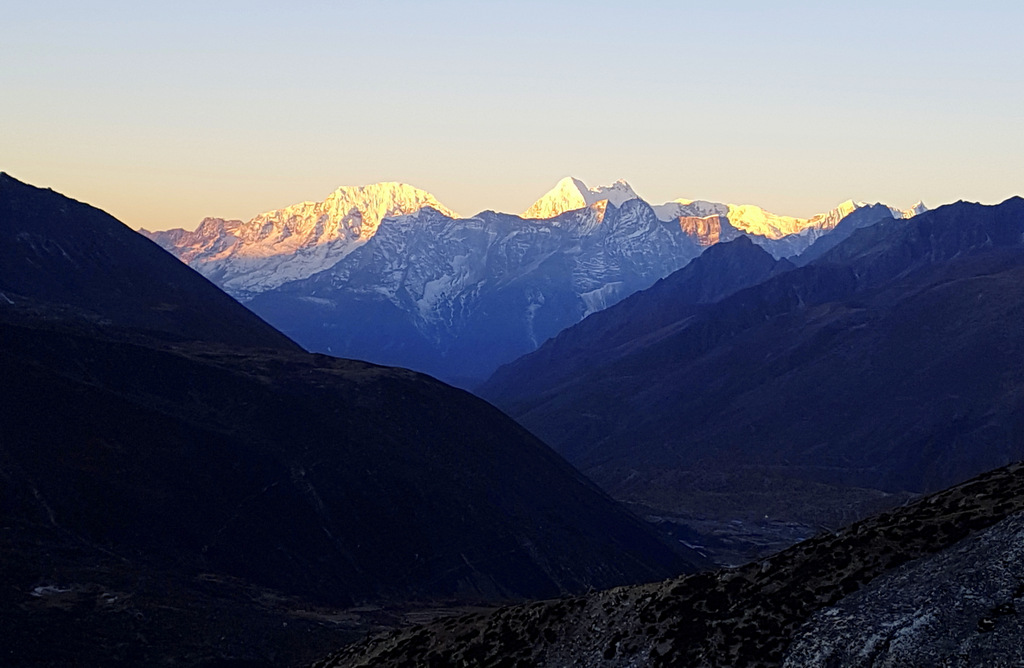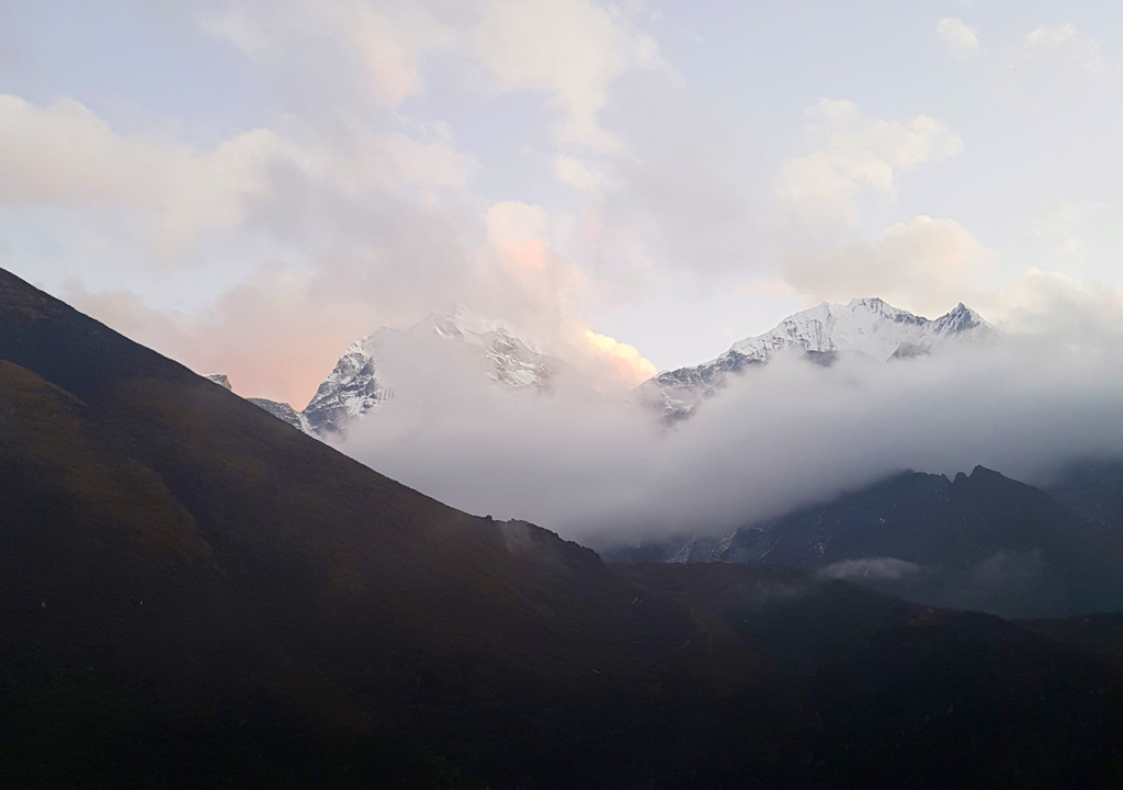 Горы на закате. Вид из нашего лоджа в Пангбоче.
