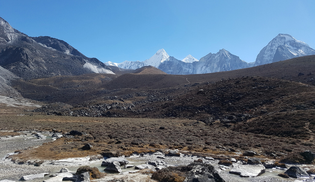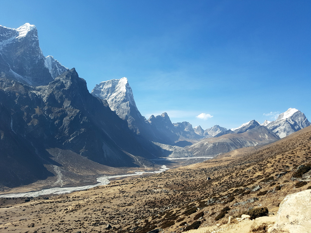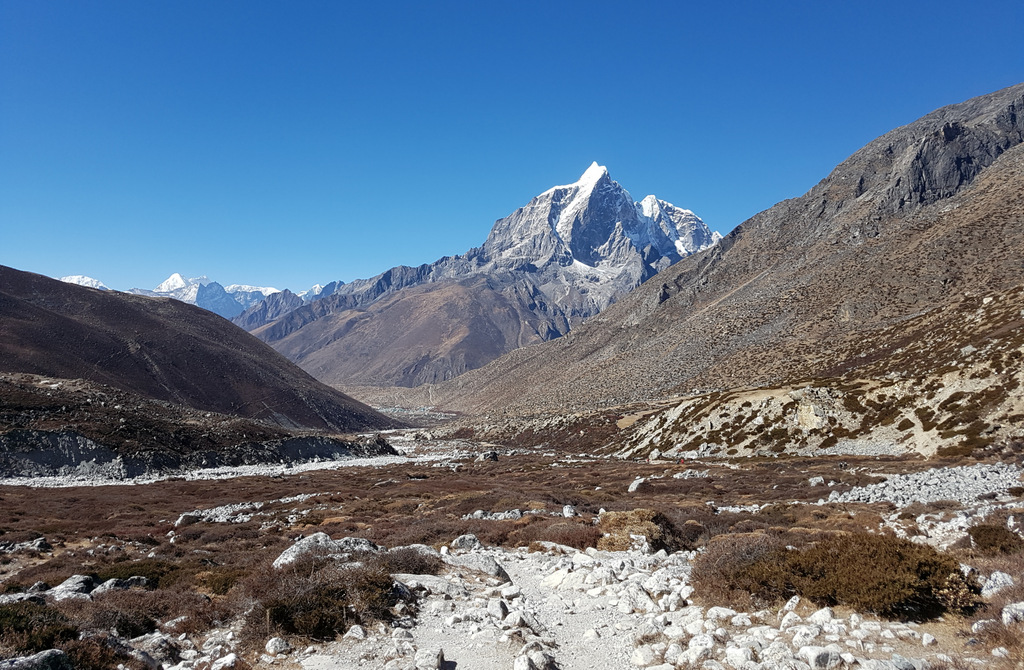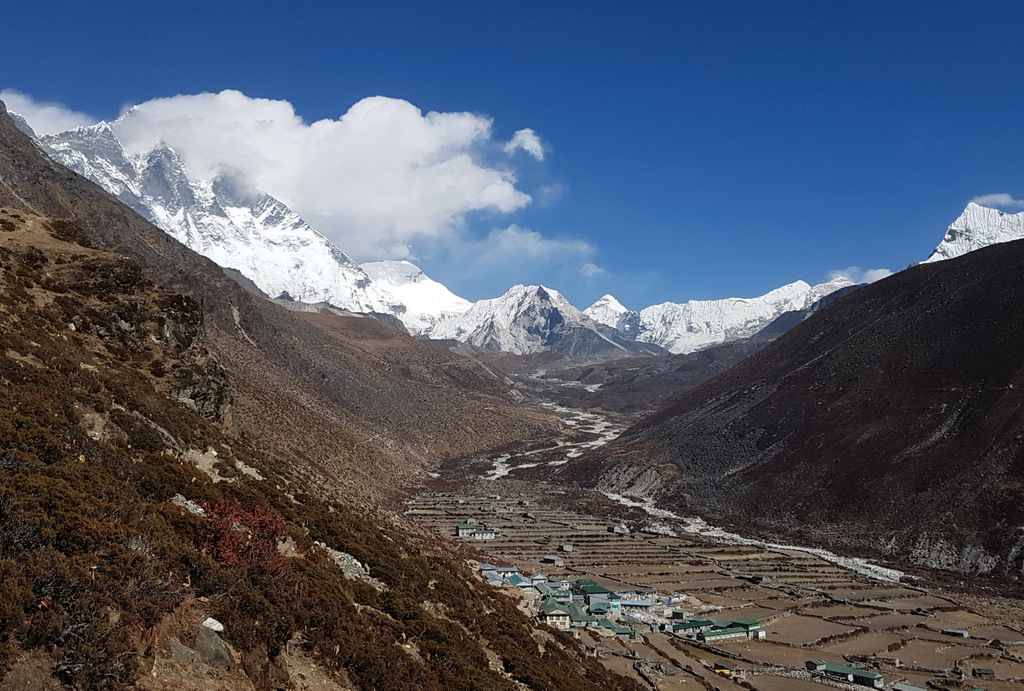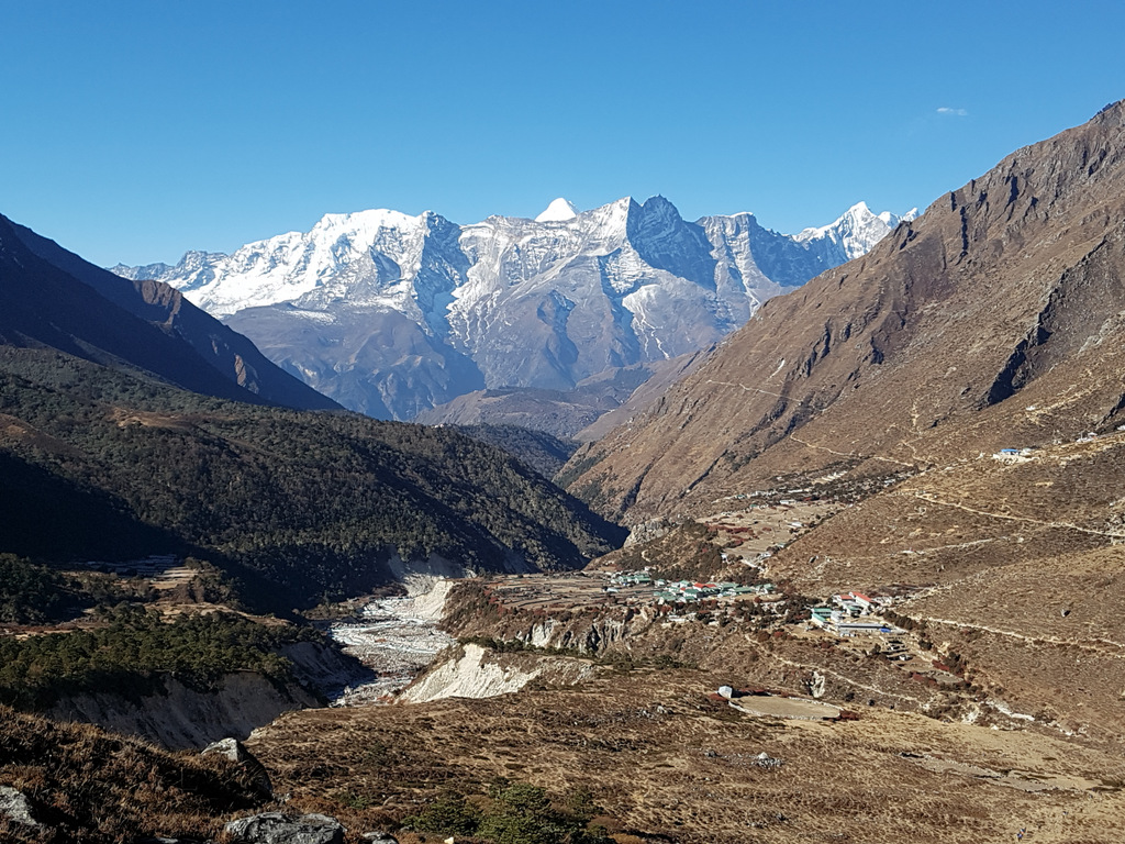 Впереди виден Пангбоче и тропа к базовому лагерю Ама Даблам (на противоположном берегу).
