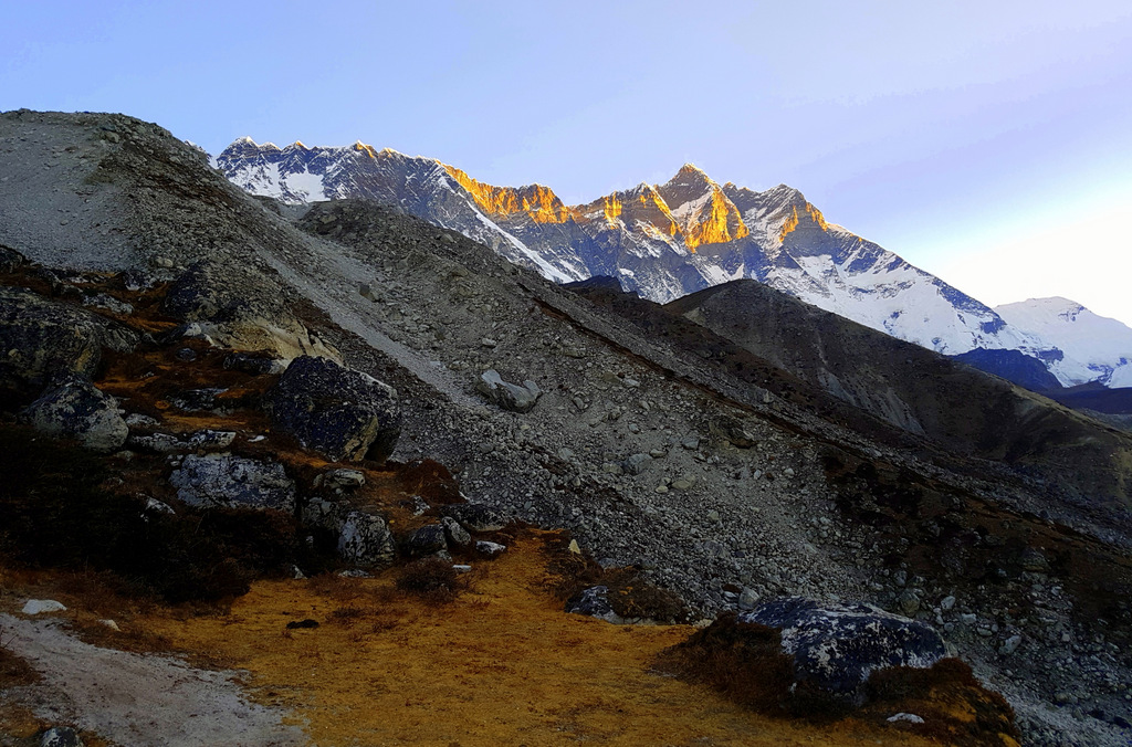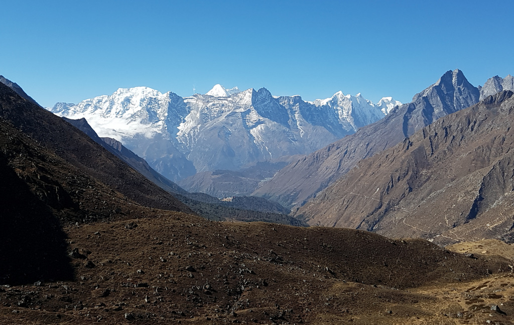 Вид на Эверест, Лхоцзе, Нупцзе с тропы Намче-Тенгбоче.