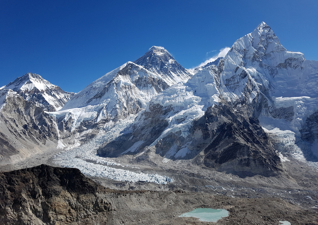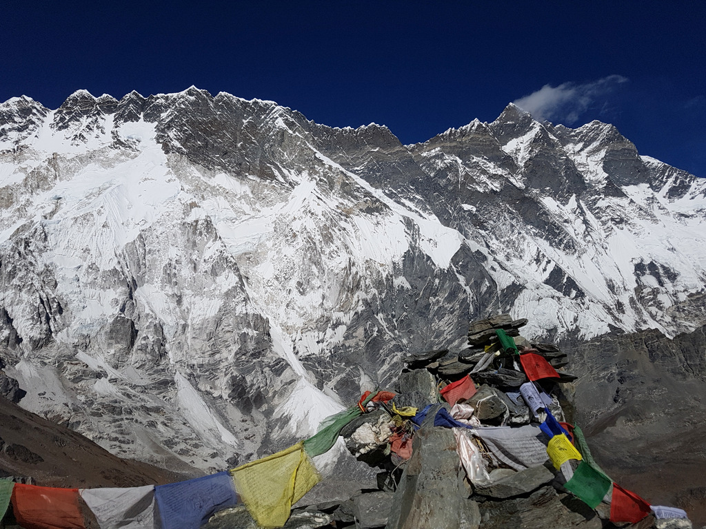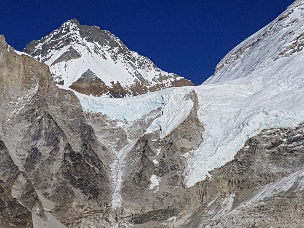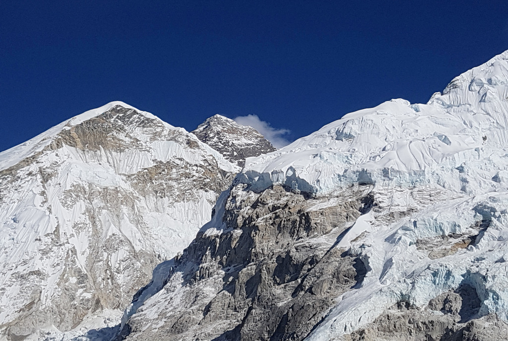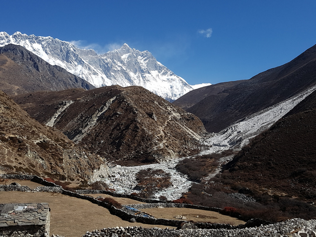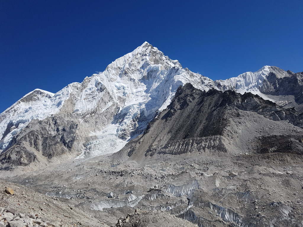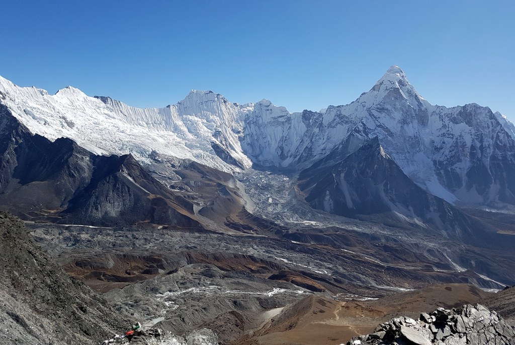 Вся эта картина: Эверест в обрамлении белоснежных пиков и ледник Кхумбу — она потрясает. По моему, это лучший вид на всём треке.