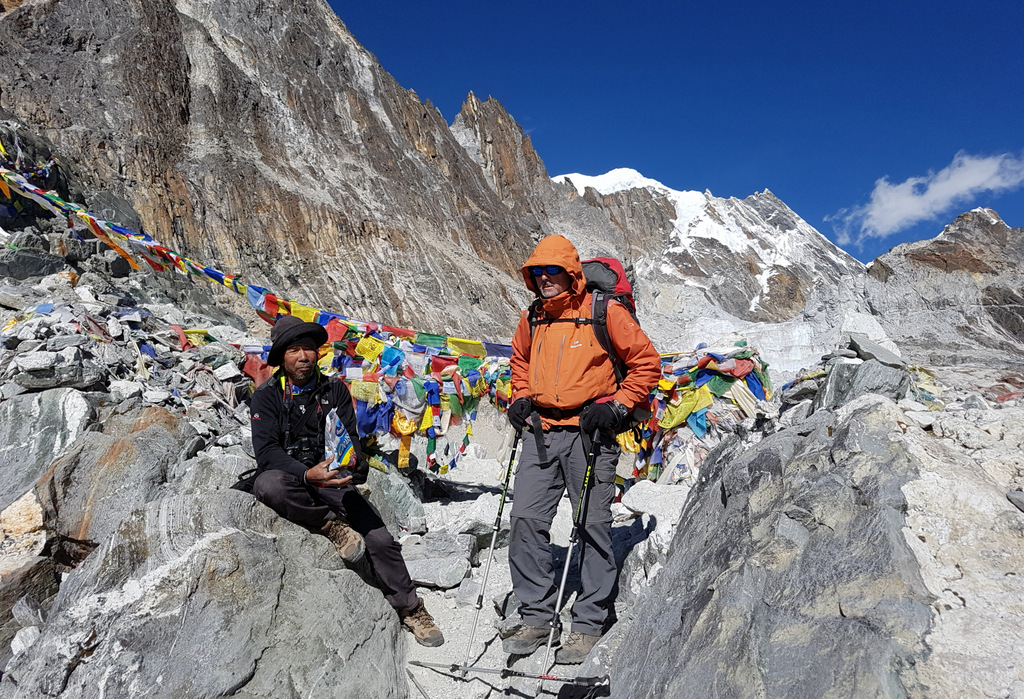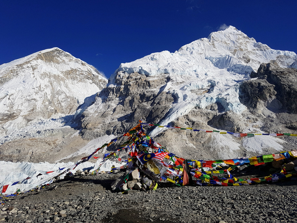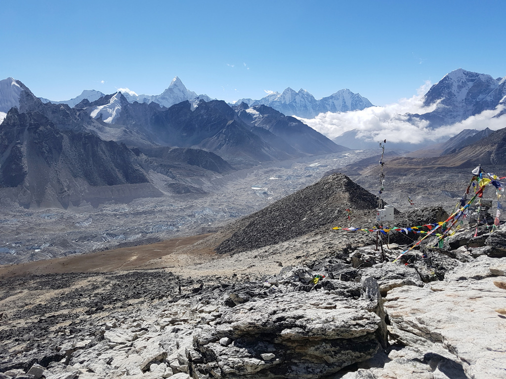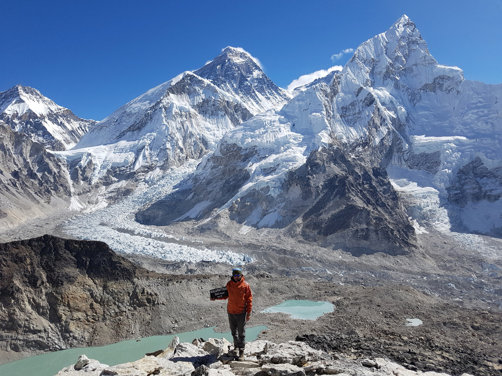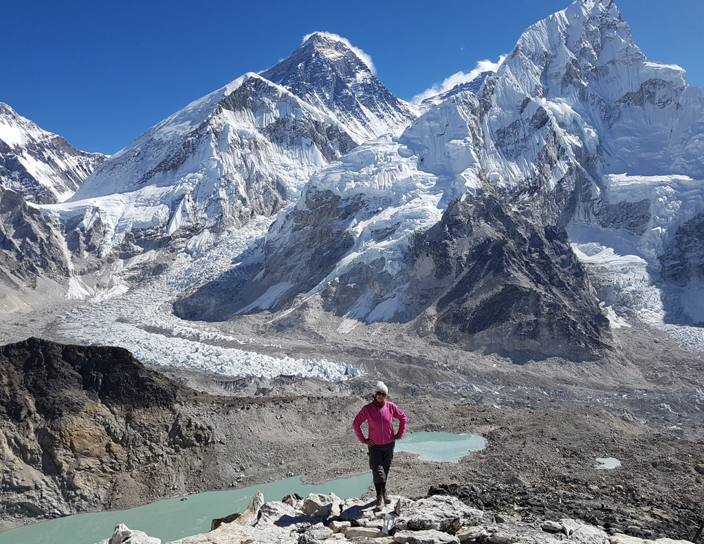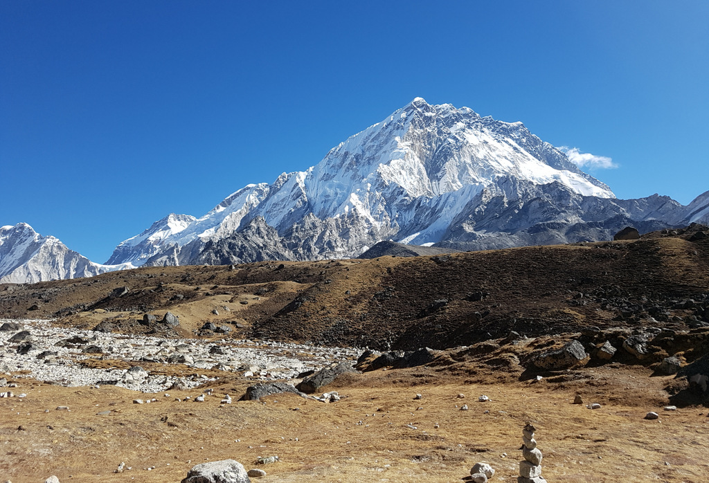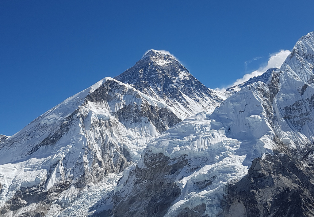 Вся эта картина: Эверест в обрамлении белоснежных пиков и ледник Кхумбу — она потрясает. По моему, это лучший вид на всём треке.