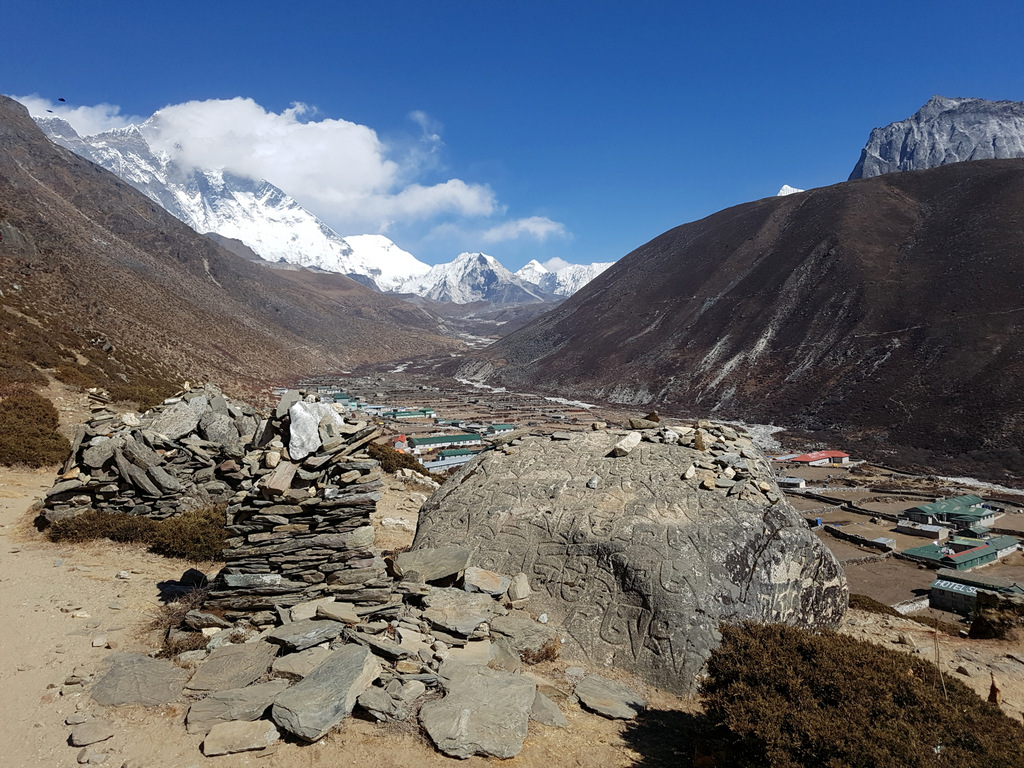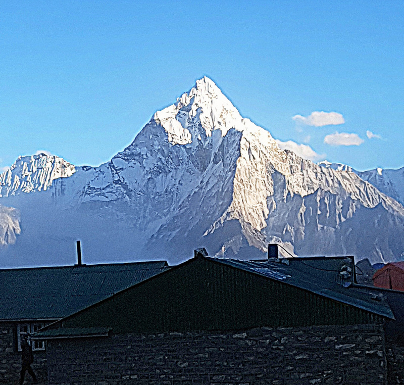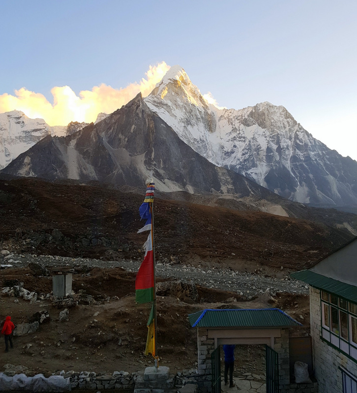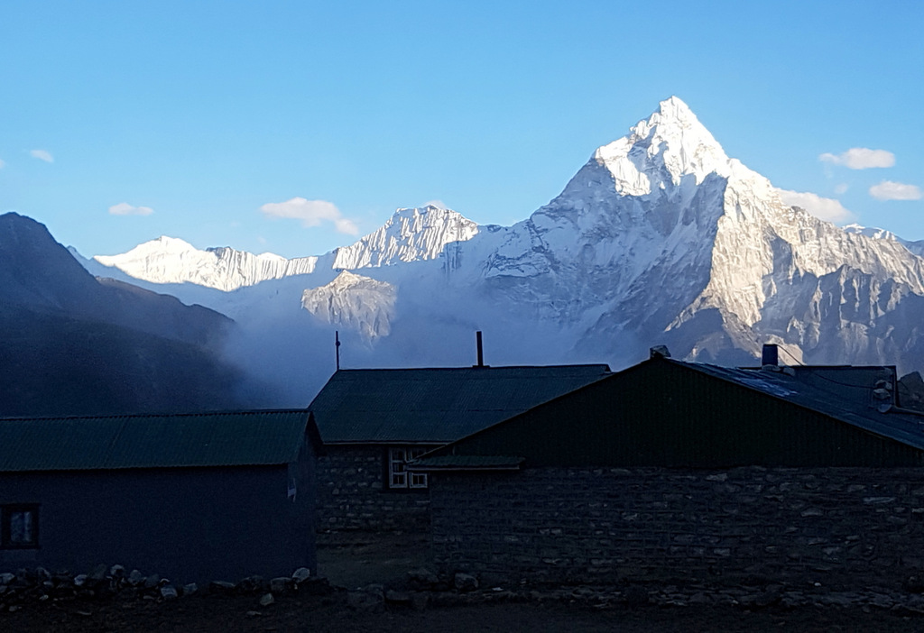 Наконец-то мы в Дзонгле! Очаровательнейшее место. Потрясающий вид на Ама Даблам (с другой стороны) и на стену Омбигайчен. Дорога в Дзонглу тоже очень красива.