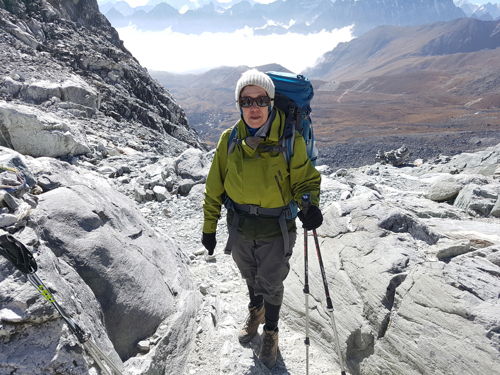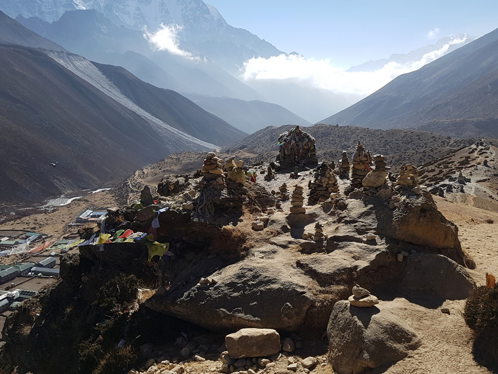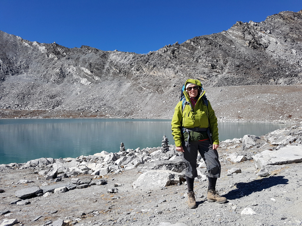 В этот момент мне было так плохо, что я даже подумала, что сил больше нет, я совсем больная и не смогу идти на третий перевал, Ренджо Ла. Ничего не остаётся, как идти из Гокио вниз, в Намче. Но тут я вспомнила, что тогда придётся подниматься в Монг, а это — 400 метров. Так тогда уж лучше собрать все силы и подняться на перевал Ренджо Ла 644 метра, и идти в Намче по соседней долине, которая должна быть безлюдной и красивой. Так мысли о капитулировании были безоговорочно отброшены.