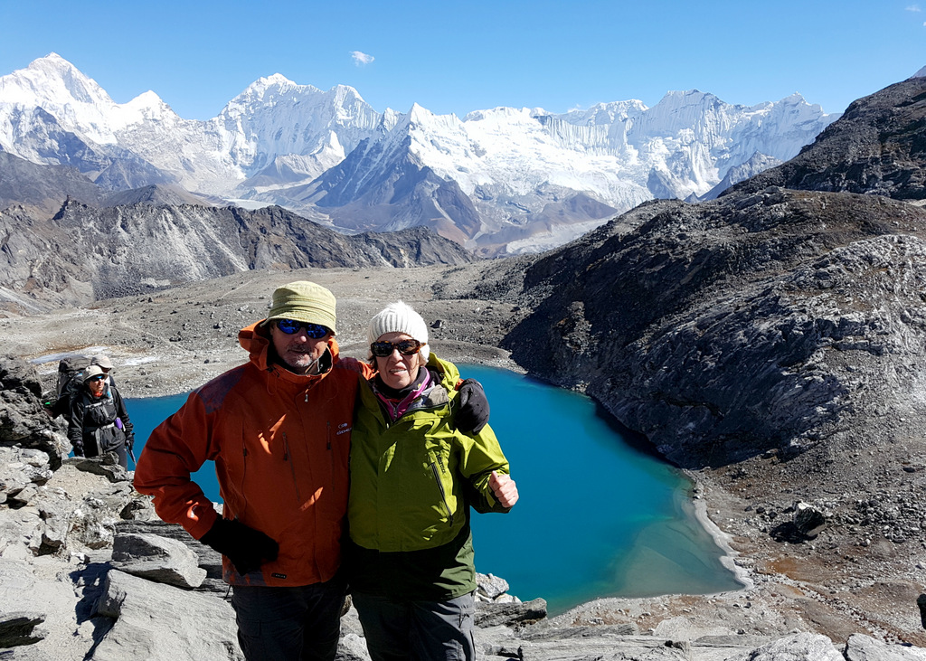 Зашли в лодж, отдохнуть перед дорогой в Лобуче и выпить горячего чая. Тут подошли Таня и Алексей, с которыми мы познакомились на перевале Конгма Ла. Какая приятная встреча! Оказывается, они отдыхали в Лобуче, так как Таня приболела, а теперь она чувствует себя лучше, и они пришли в Горак Шеп. С удовольствием пообщались с ними.