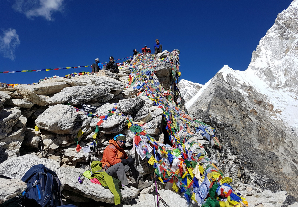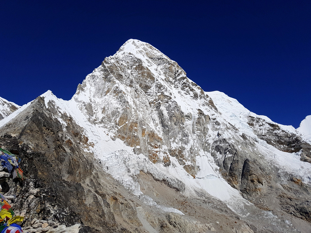 С вершины Кала Паттара Эверест виден вплоть до Южного седла, видны его изгибы и складки, видно, как ветер сдувает снег с вершины… Эверест так близко! Если верить википедии, расстояние от Пумори до Эвереста всего 8 километров, а значит и от Кала Паттара примерно столько же, может чуть больше или меньше.