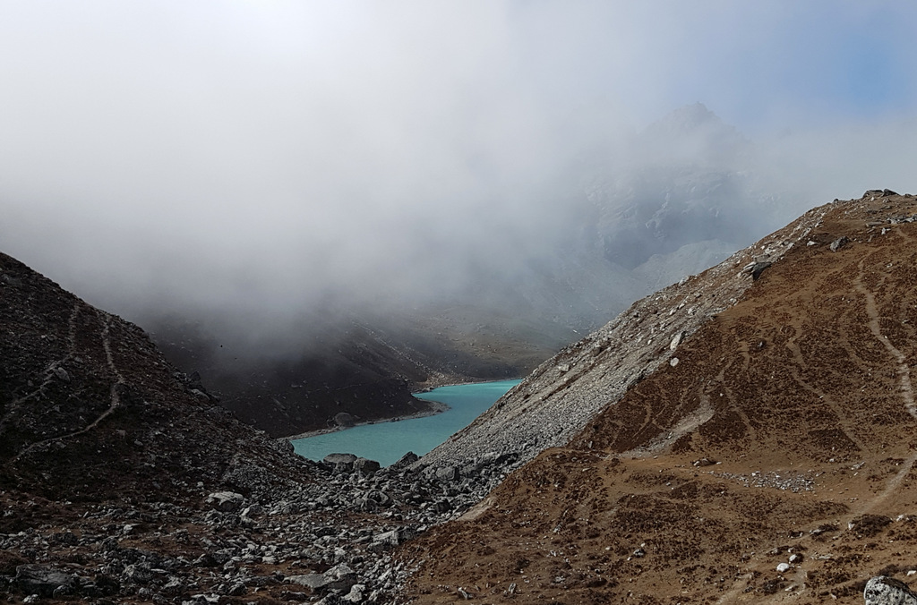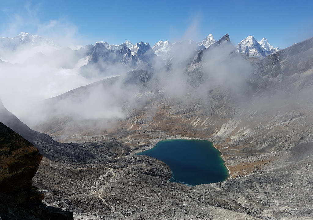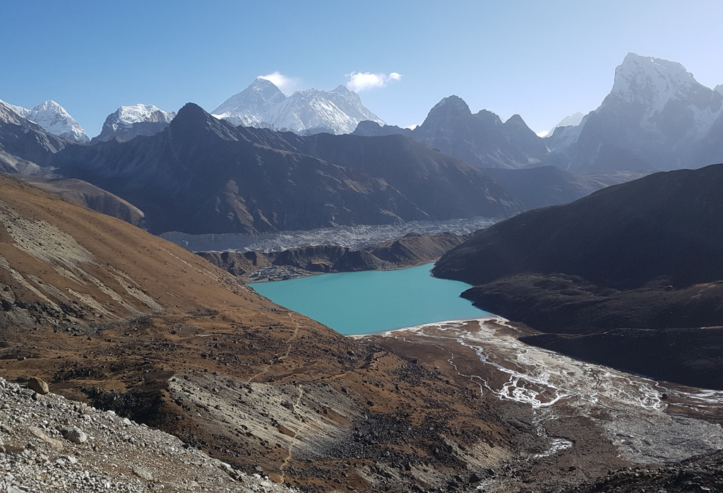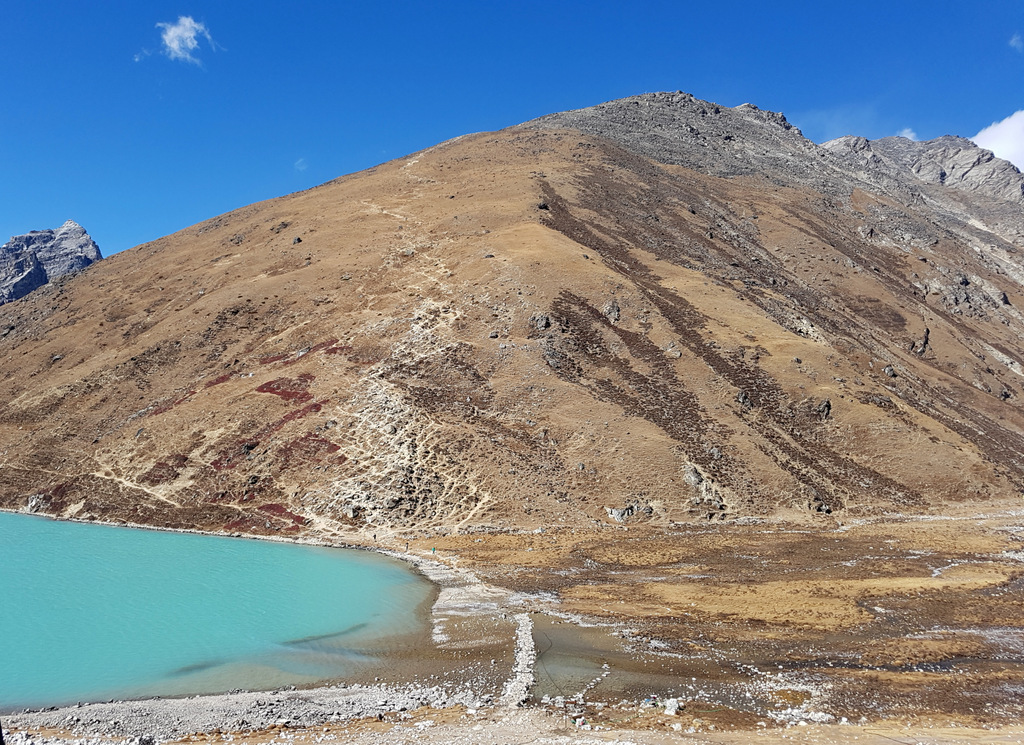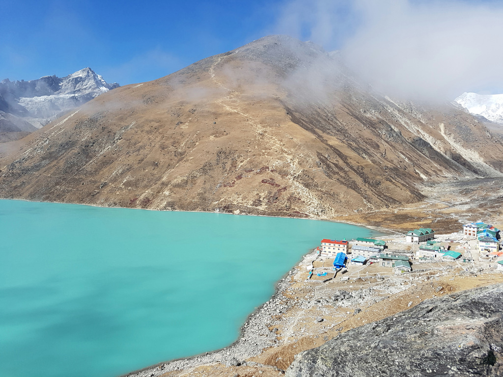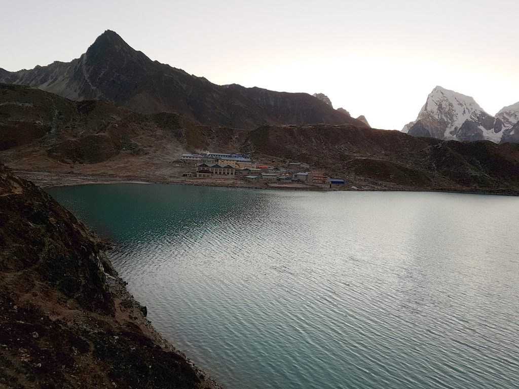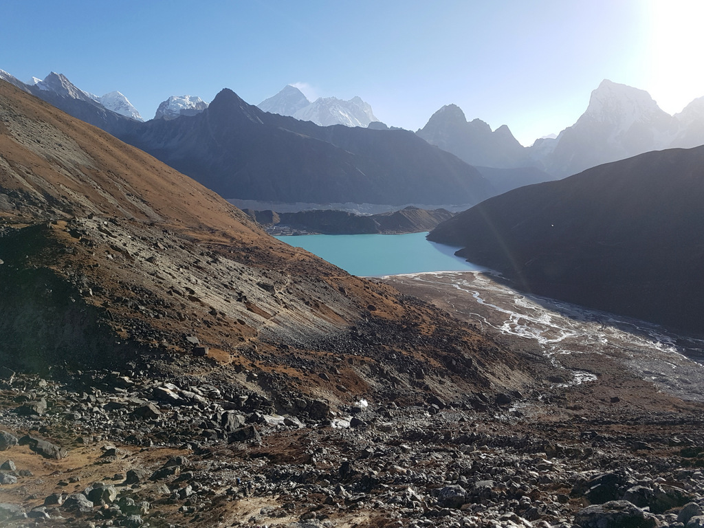 Подошли к валу, преодолели крутой, но недлинный подъём, выбрались наверх, и вот оно перед нами — озеро Гокио. Алиллуя!