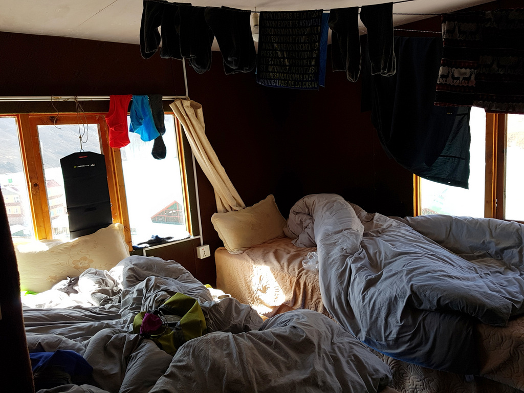 Лодж в Гокио. Называется Fitzroy Inn. Лодж довольно новый. Комната светлая и солнечная, с двумя окнами. Унитаз сверкает белизной. В душе, как и обещал хозяин, горячая вода была после трёх часов, и удалось нормально помыться. Однако, в комнате очень тонкие стены, и после захода солнца там ужасно холодно. Это — минус.