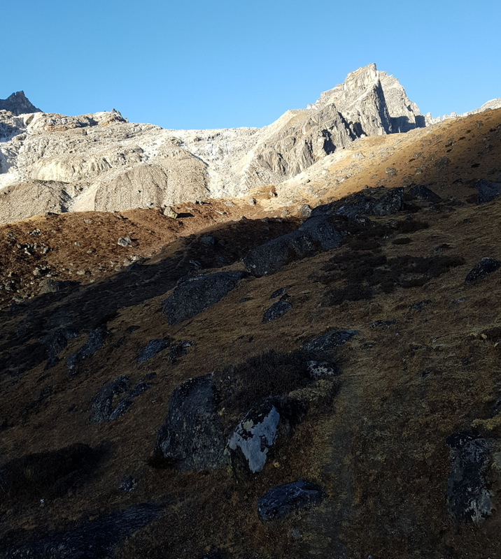 Сегодня нам предстоял короткий переход: всего 3,7 километра. Правда из них 1,5 километра, а то и больше — пересечение ледника Нгозумба. А что значит переходить ледник, мы уже знаем.