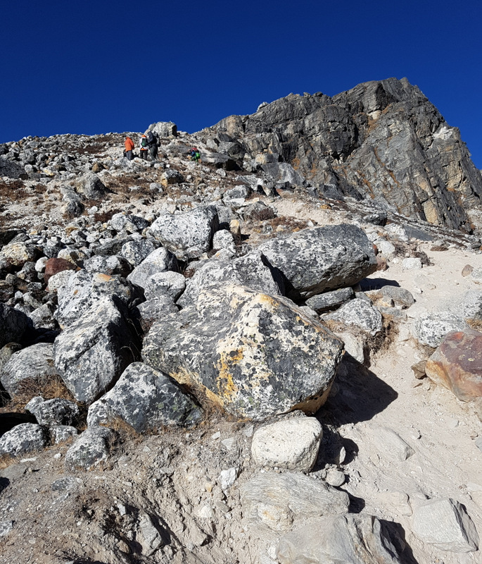 Справедливости ради нужно сказать, что подъём на Ренджо Ла со стороны Гокио не представляет никакой проблемы. Тропа понятная, иди себе и иди, и придёшь на перевал. Кто-то сделает это за 2,5 часа, а кто-то за 5,5 часов, как, например, я 🙂 .