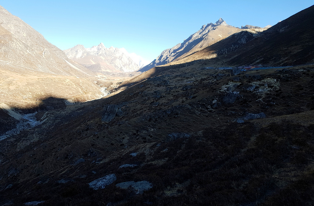 Ура, мы снижаемся, сбрасываем высоту! Прощай холоднющий Гокио! Не хочу даже про тебя вспоминать. Здесь хоть и холодно, но уже теплее, чем в Гокио, и это чувствуется. Завтра уже будем отогреваться в Намче, на высоте 3440.