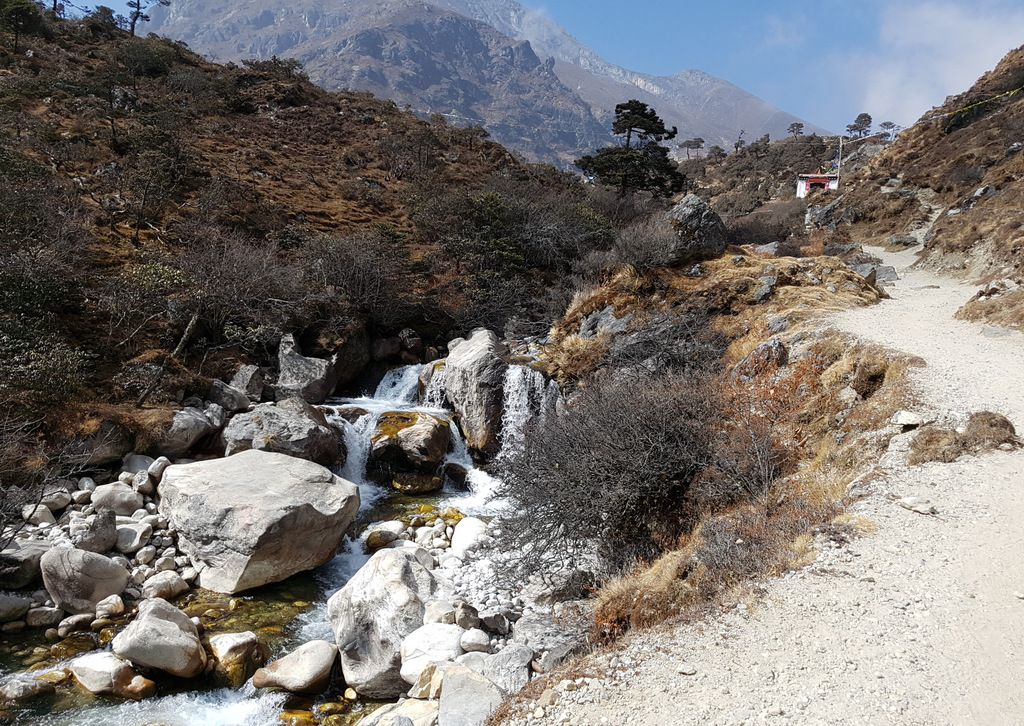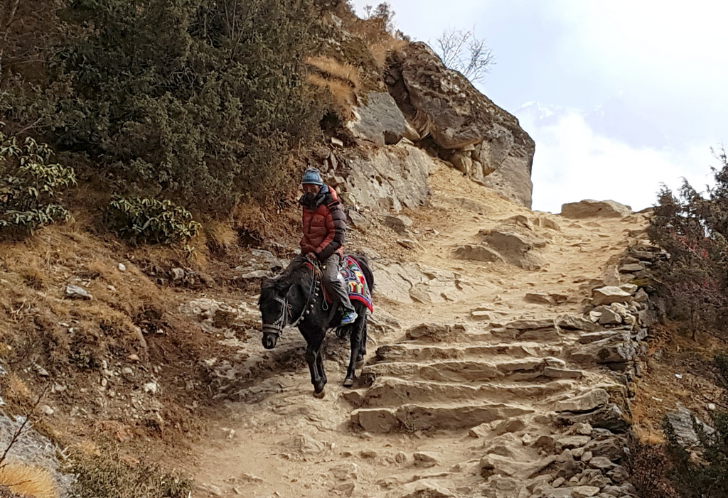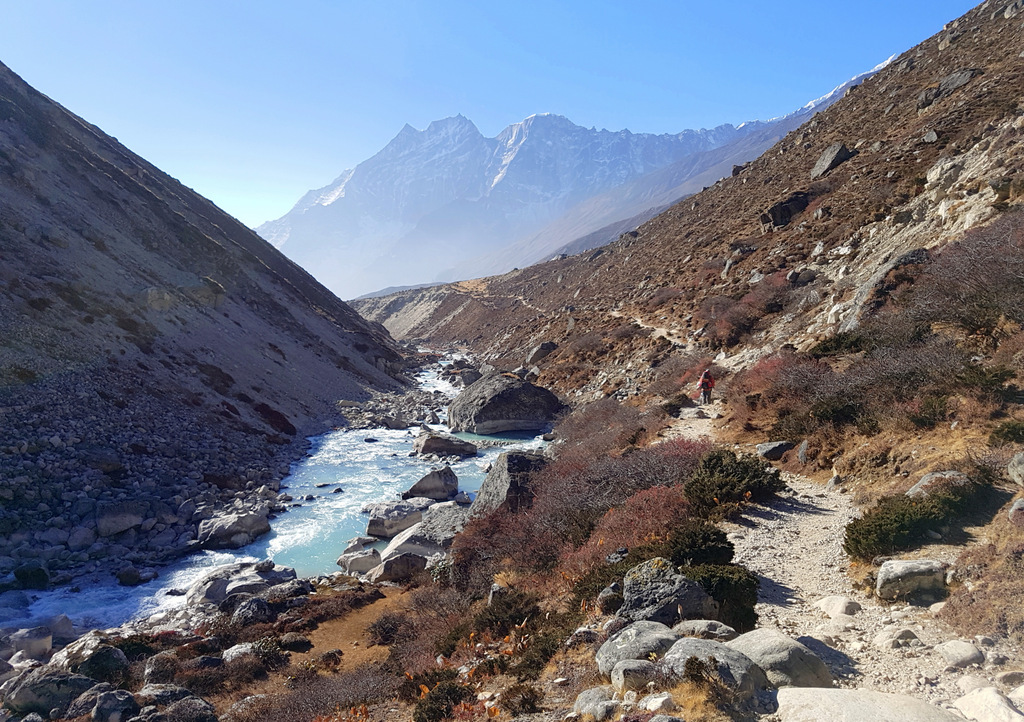 По всей этой территории движутся люди в обоих направлениях. Трафик здесь гораздо оживлённее, чем на Кхумбу. Тропа хорошо промечена руджумами, и она отлично видна.