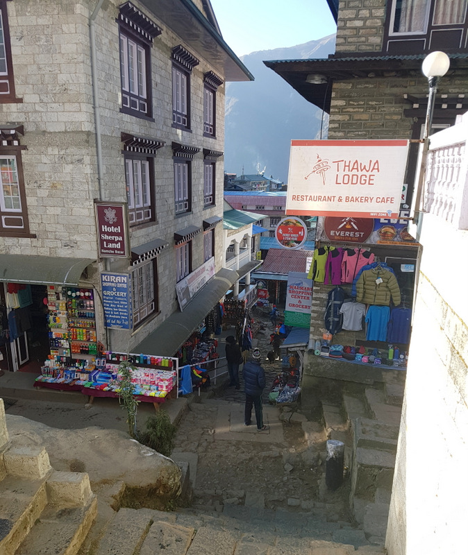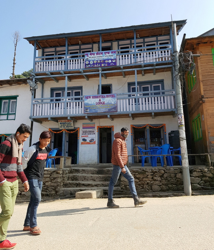 Лодж в Пхаплу. Называется New Shrestha Hotel & Lodge. Это тот же лодж, что и по пути туда, с весёлым хозяином. Есть балкончик, на котором приятно стоять и любоваться окрестностями. Балкончик есть только в этом лодже, в других — нету. Комната большая, и в ней есть розетка. Короче — лодж вполне хороший.