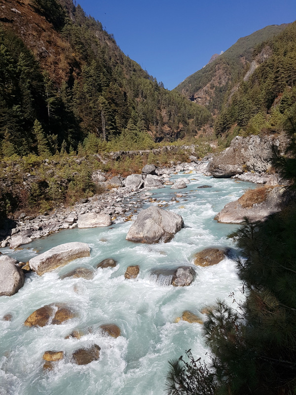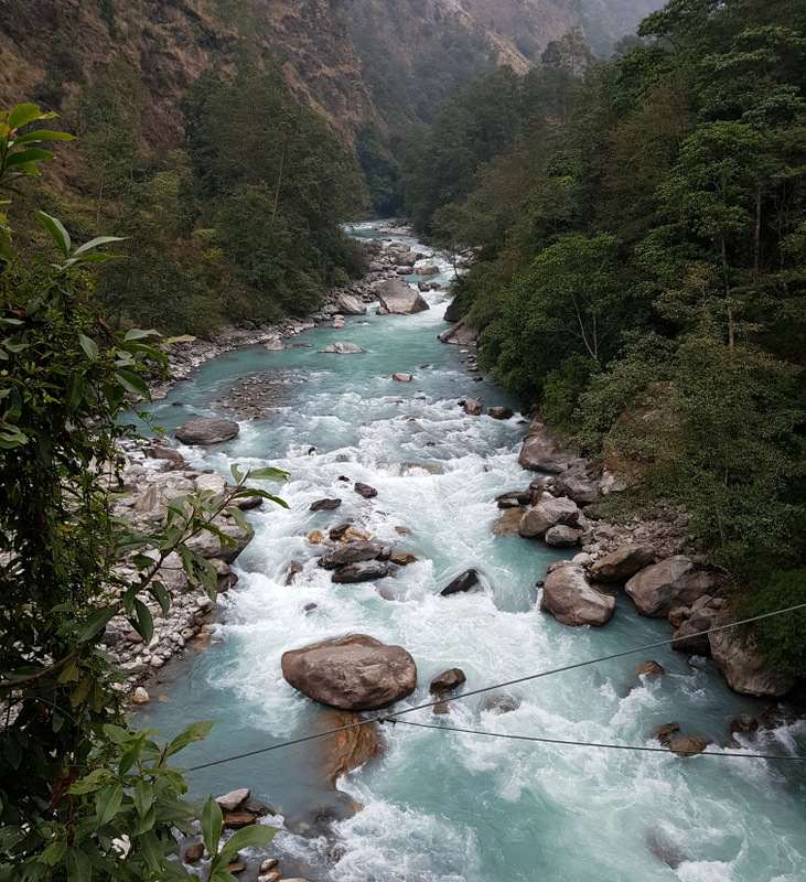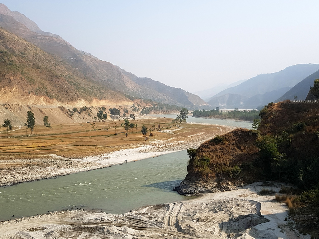 Большая часть пути проходила по долине рядом с живописной рекой Рози Кхола. Мы сделали небольшую остановку у реки и полюбовались пейзажем в действительности, не из окна джипа.