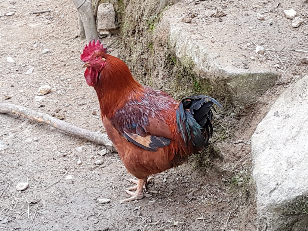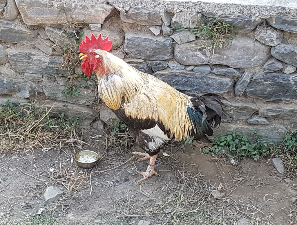 Этот петушок ехал в багажнике джипа. И ему тоже положен дал бат на обед. Правда, без похлёбки, один рис 🙂 .