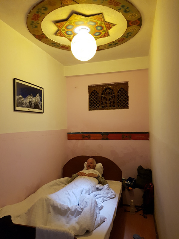 Тогда, на правах очень больной треккерши, я предложила Саше, чтобы он без рюкзака поискал подходящий лодж, а я подожду его здесь. Саша согласился и ушёл. Очень долго он не возвращался, и я уже думала, что свободных комнат нигде нет. Но вдруг, минут через 40, он приходит и говорит, что есть три лоджа на выбор. Я, конечно, выбрала тот, где в номере имеется европейский туалет и горячий душ, пусть и стоит это удовольствие 3000 рупий. Я готова была заплатить любые деньги, чтобы получить наилучшие условия. Они были нам необходимы, как воздух.