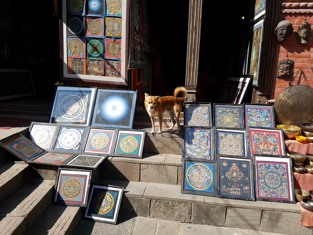 Нагулявшись по Сваямбунатху, мы поехали на такси в Тамель. Крупных покупок не намечали, всё уже куплено. Хотели купить только нашивки с названием мест, где мы побывали на треке, и чётки из натуральных камней для Саши. Часть нашивок купили, но не все, которые хотели. Обошли много магазинов, но нужных нашивок нигде не было.