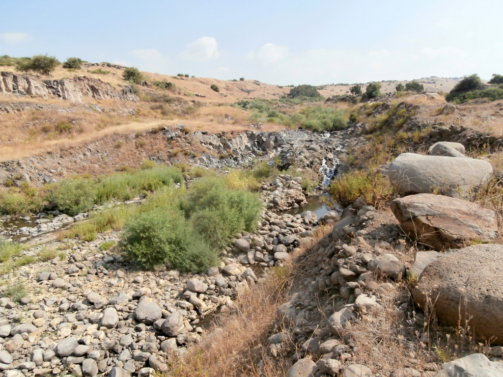 Сначала нужно идти по нахалю Далиёт до впадения в него нахаля Батра. Недалеко от стоянки мы спустились в нахаль Далиёт и пошли по его руслу. Приятно было увидеть, что в нахале течёт вода. Кстати, вода в нахале Далиёт есть круглый год.
