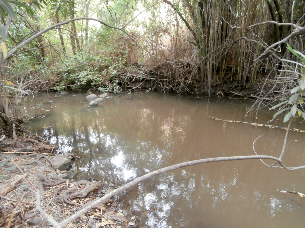 На каком-то этапе мы увидели просвет в зарослях, услышали шум воды и подумали, что водопад здесь. Спустились вниз — и опять разочарование. Это никакой не водопад, а просто течёт вода по камням.