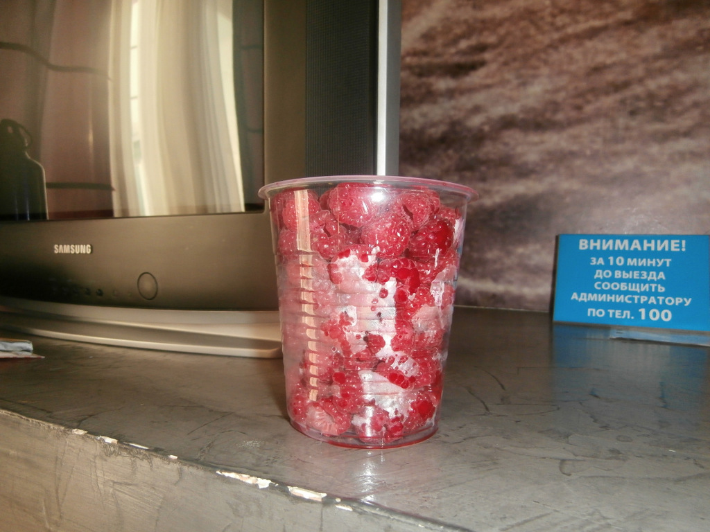 Купила в супермаркете продуктов  на ужин и на завтрак и малину у бабульки. Надо же, как и раньше бабушки продают ягоды в стаканчиках. Только стаканчики теперь пластиковые.
