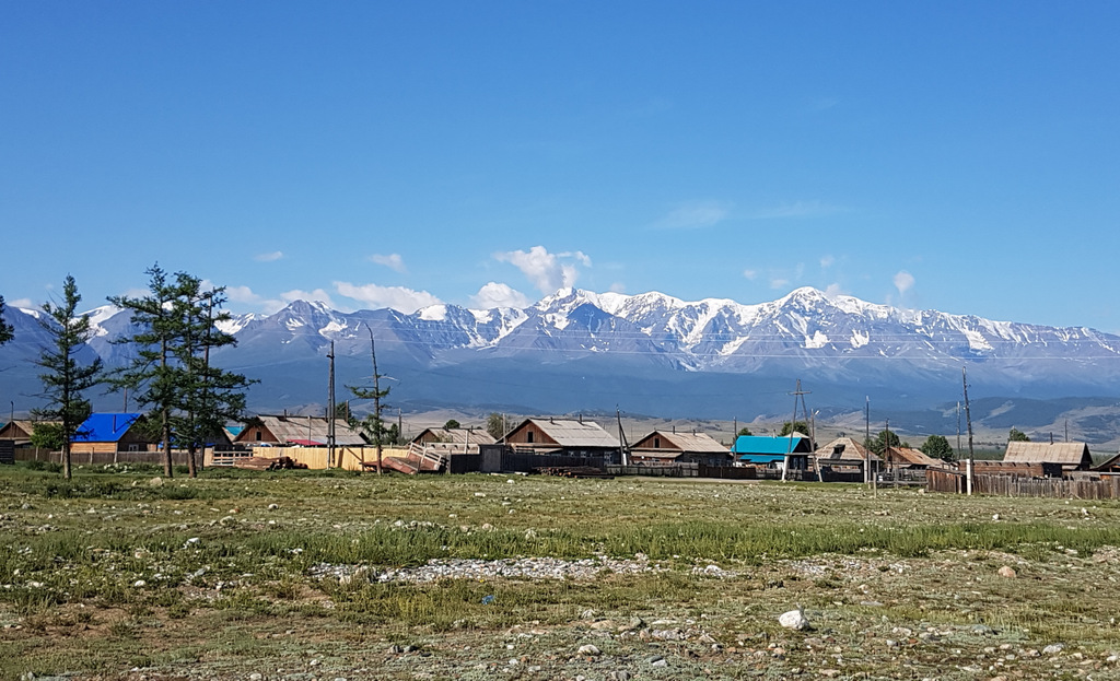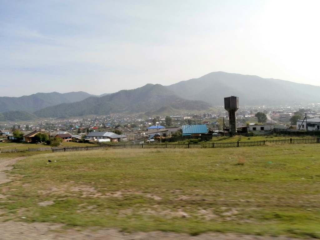 Посёлок Огундай. Далеко на горизонте маячат манящие горы.