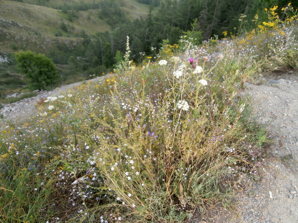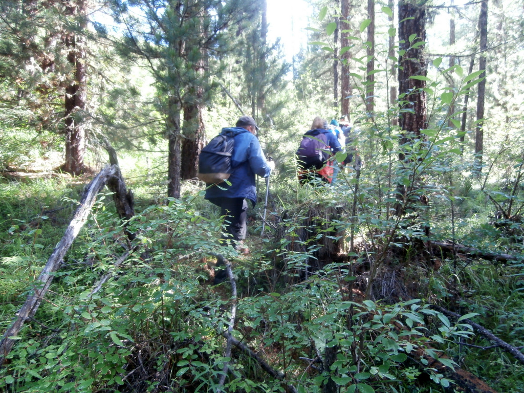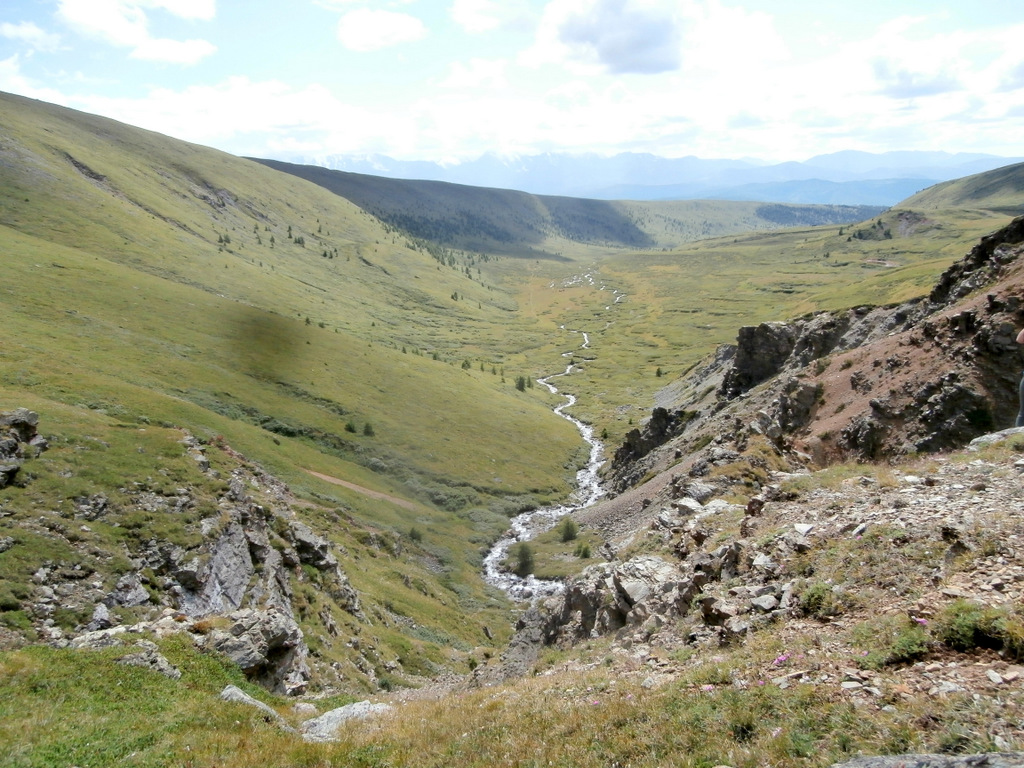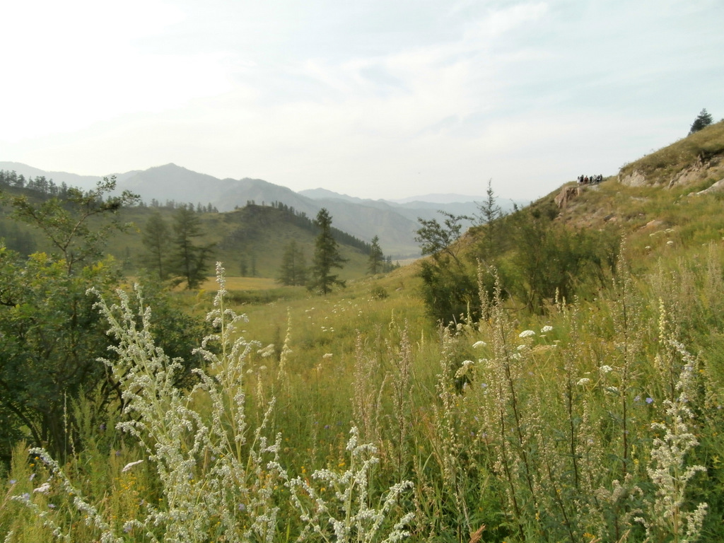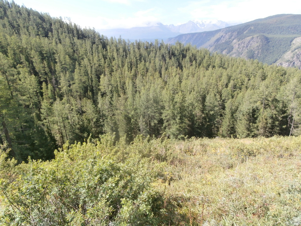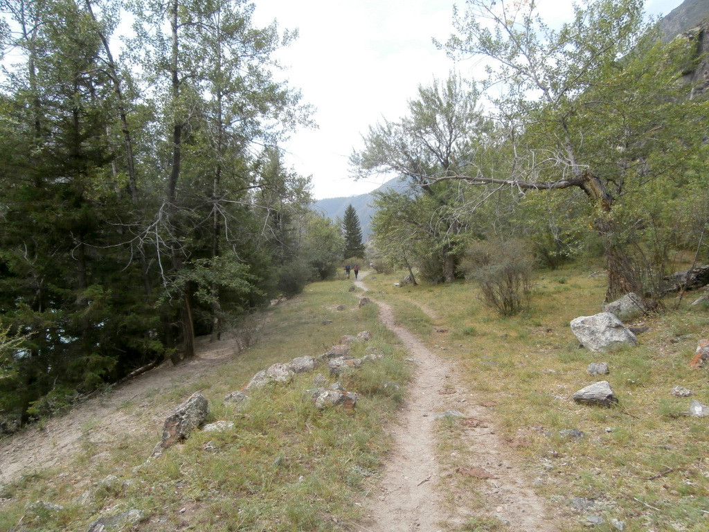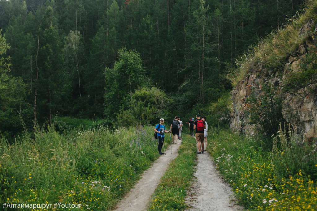 Проехали километров 20 на восток по Чуйскому тракту и вышли прямо в поле рядом с шоссе. Здесь проходит старая дорога, и по ней мы пошли на перевал Чике-Таман. Так я хлебнула первый глоток природы Алтая. Впоследствии будут маршруты более крутые и более впечатляющие, но этот был первый, и я шла и наслаждалась, любуясь цветущими лугами, лесом и горами.