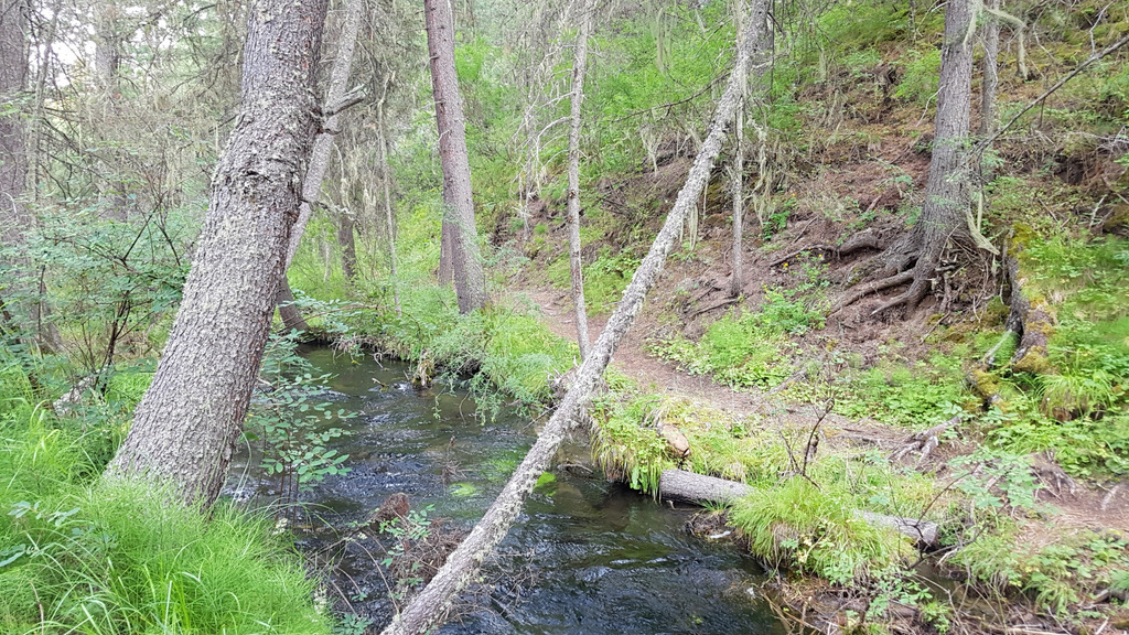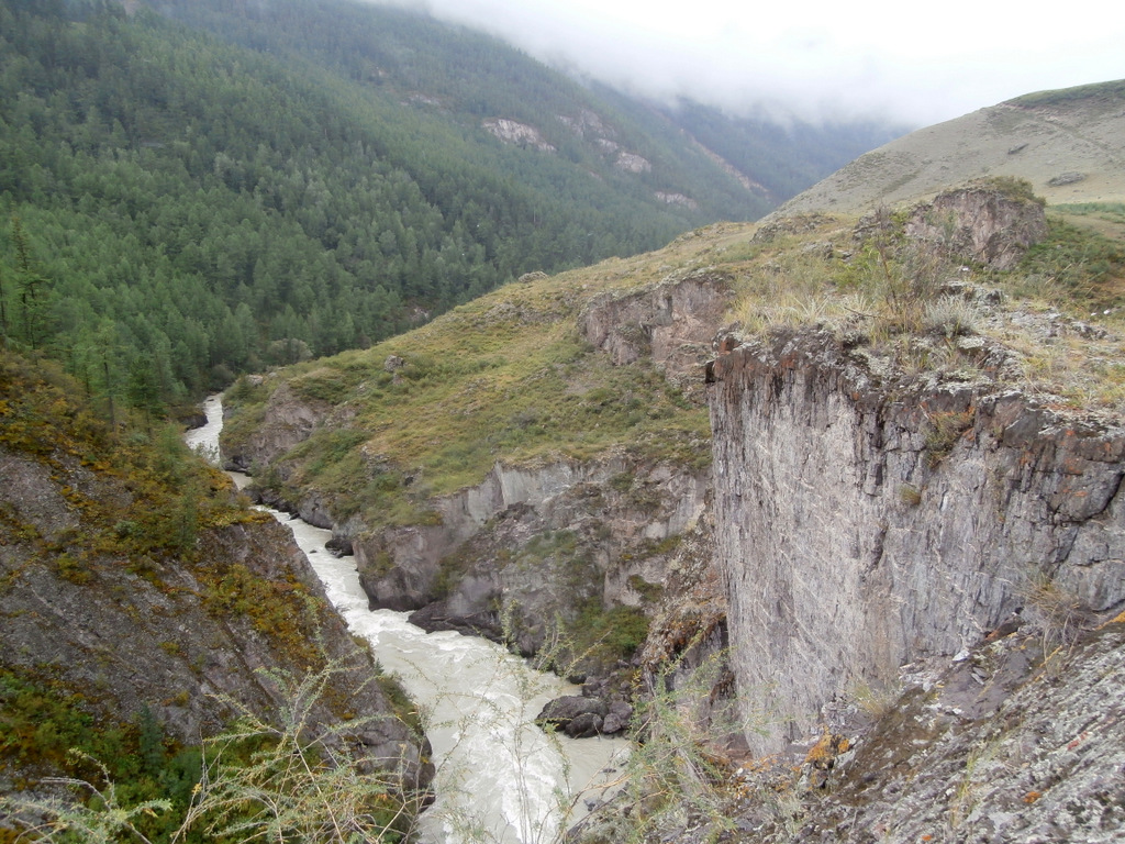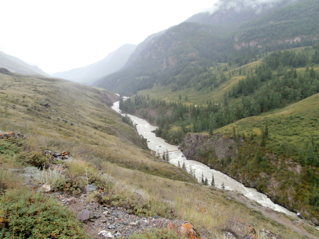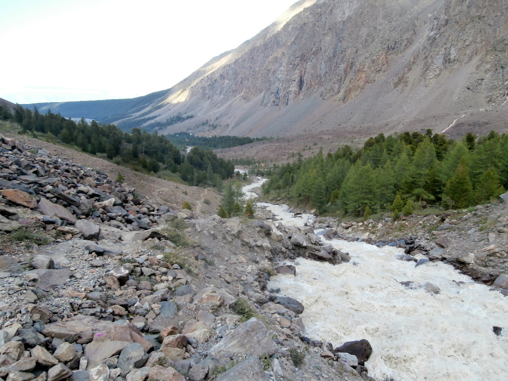 Ноги мои ныли от усталости и еле передвигались, и даже вниз идти было очень тяжело. Но красоту окрестную я замечать успевала. Речка Ярлыамры, вдоль которой мы шли, стала полноводной после дождя, и я всё время ею любовалась.