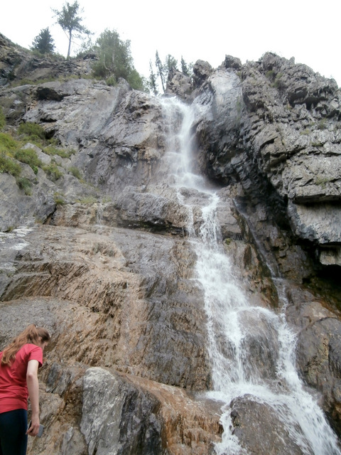 По дороге наша головная подгруппа остановилась в красивейшем месте у небольшого, но бурного водопада. Мы подошли совсем близко к воде. Это место показал водитель Алексей, шедший с нами. Я была в диком восторге от водопада. А отстающей группе не посчастливилось полюбоваться им. Уже не осталось на это времени.