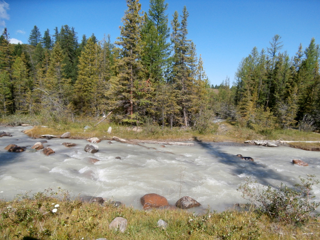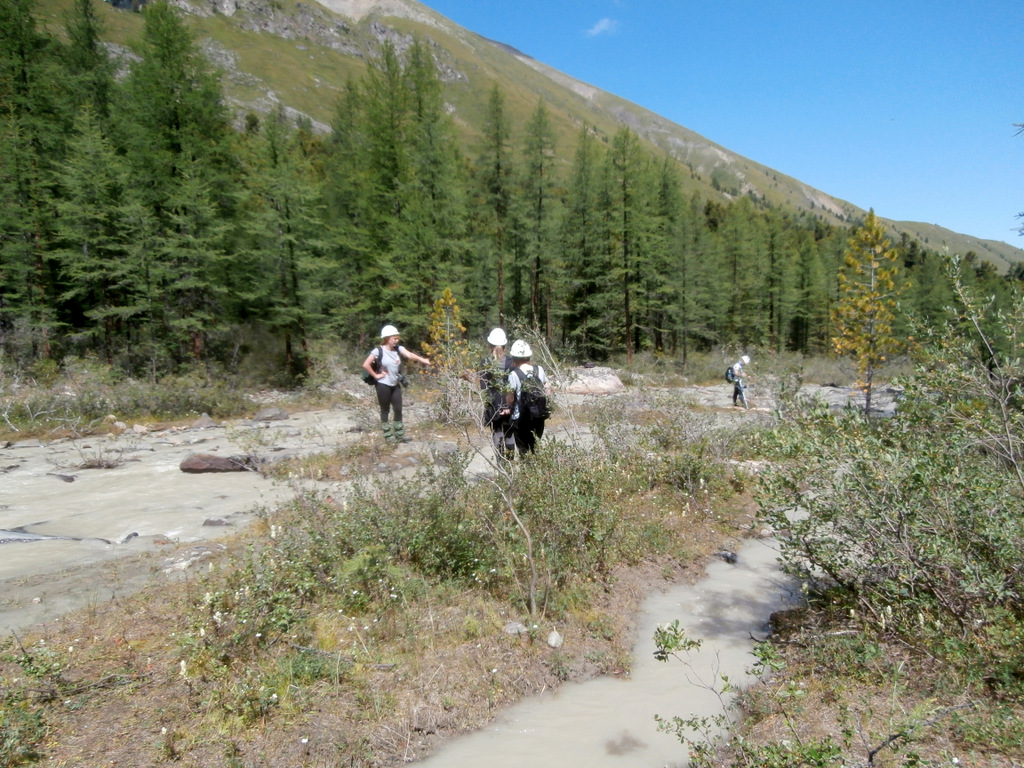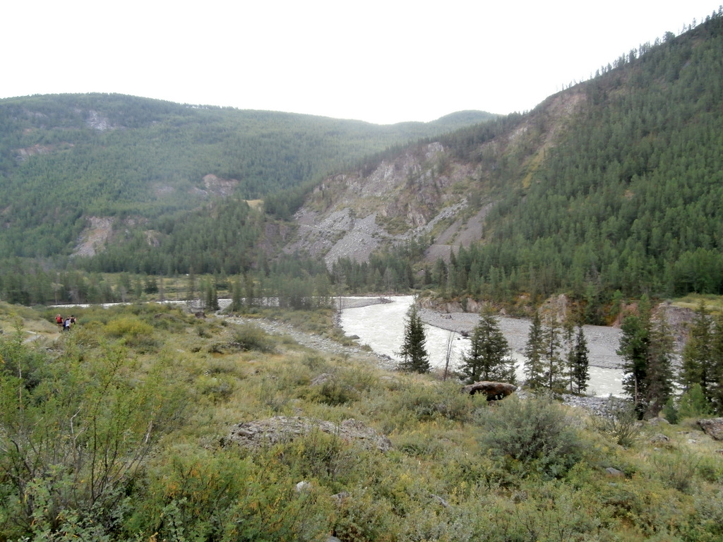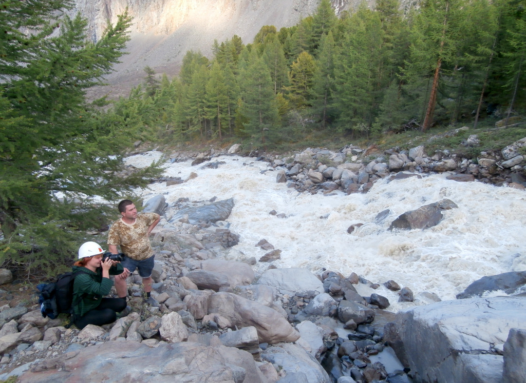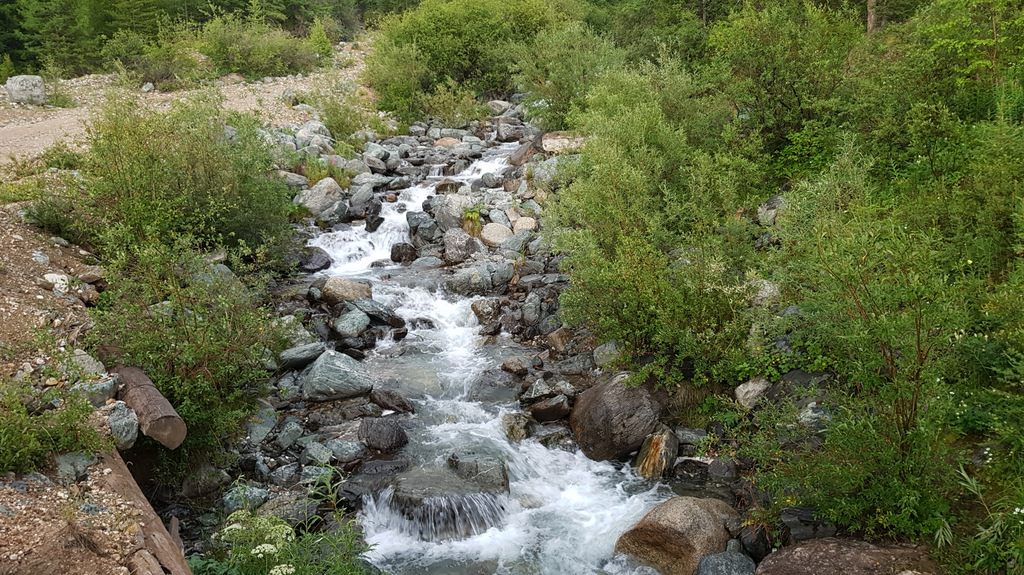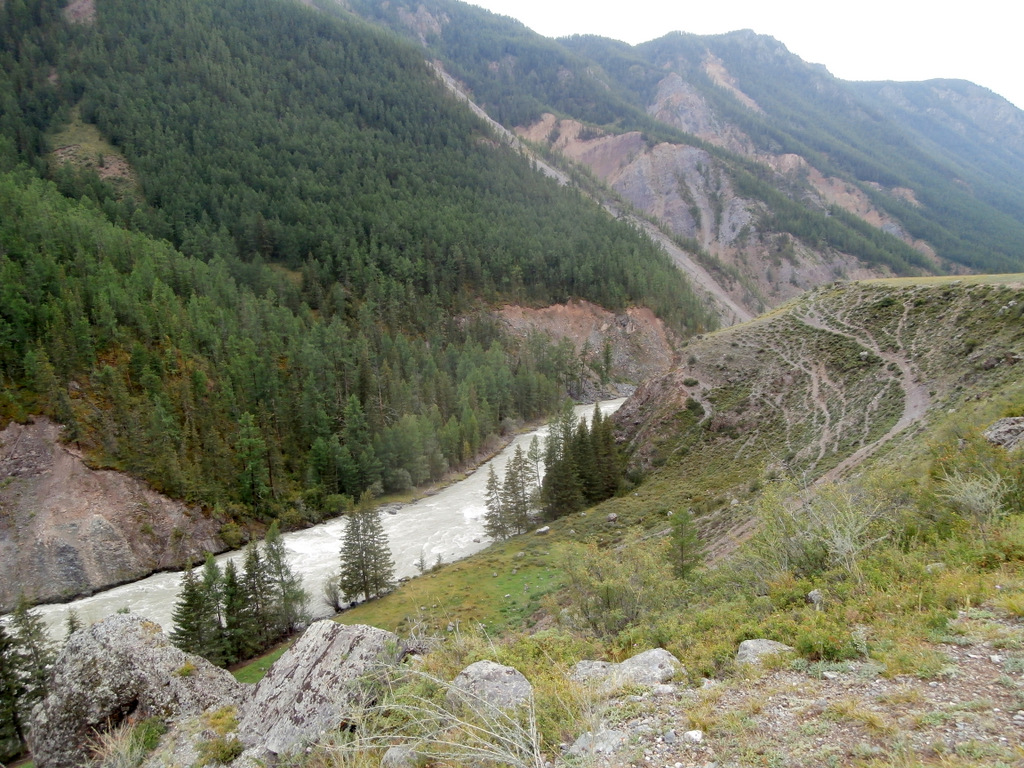 Сначала мы шли по лесу. Переходили по камням разлившийся приток Актру — приключеньице.