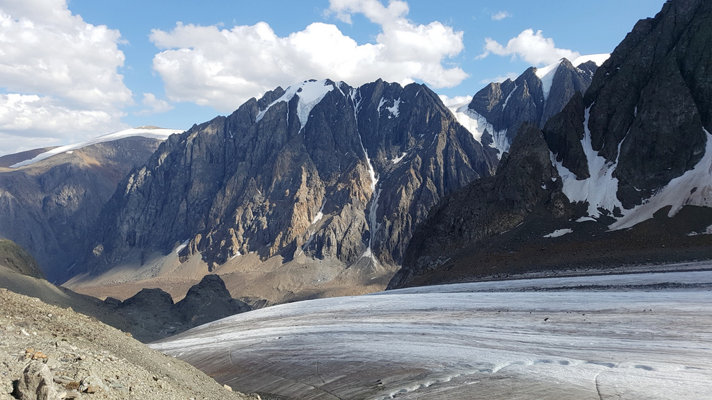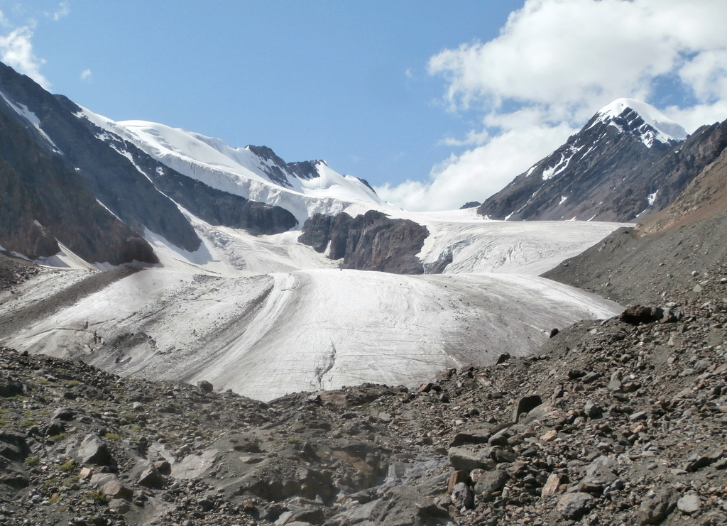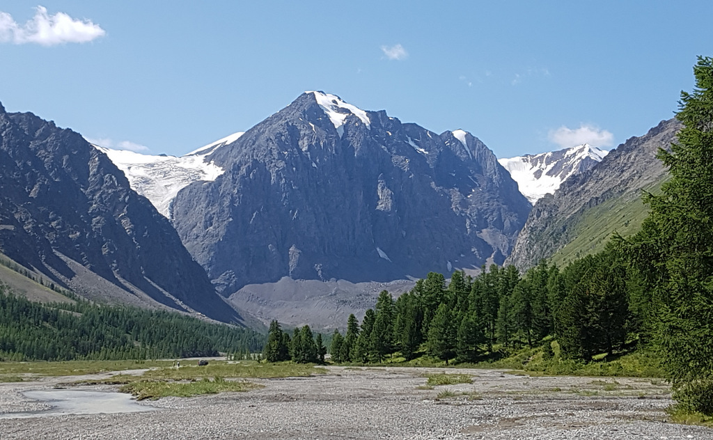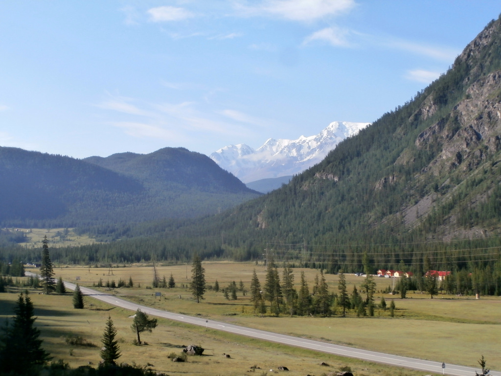 Путь к леднику Актру начинается от посёлка Курай. От нашей турбазы до него ехали часа полтора.