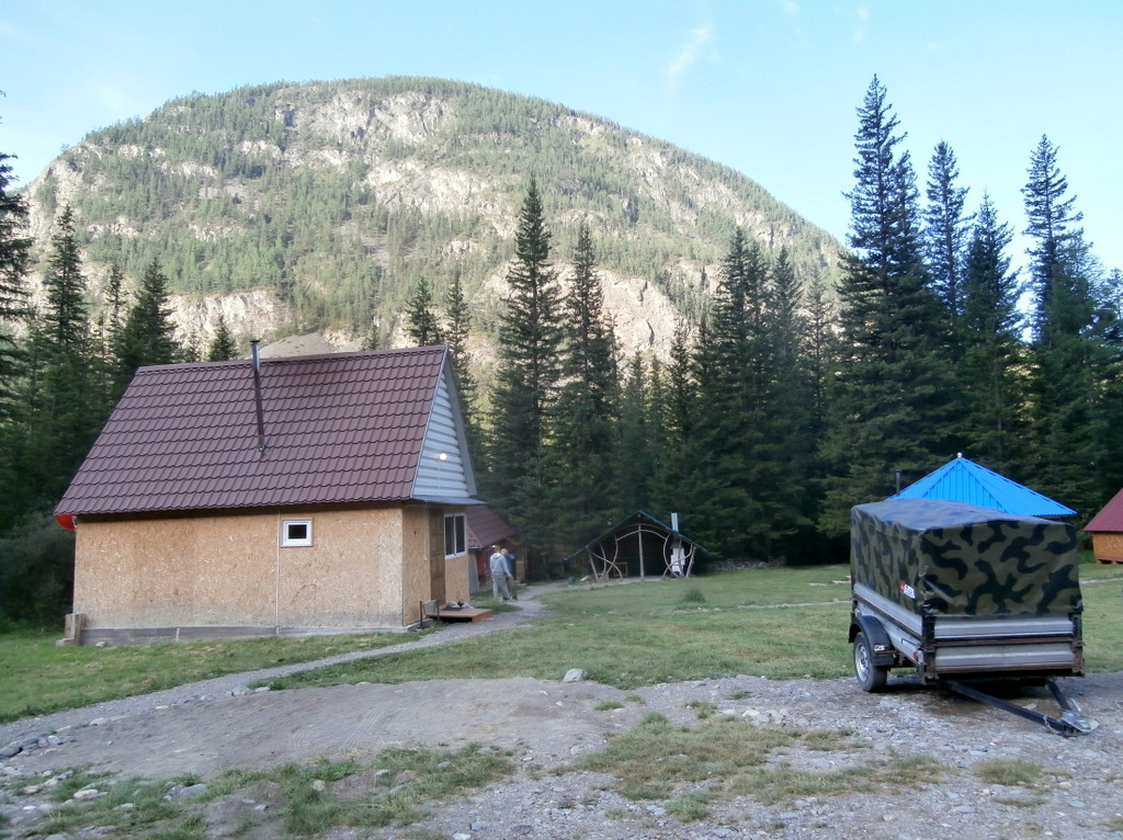 Примерно в 17:30 мы прибыли в большой посёлок Огундай и оставили прицеп с чемоданами во дворе  турбазы «Гостевой дом», где мы проведём первую ночь. Дорога из Барнаула в Огундай заняла 8,5 часов (с остановками).