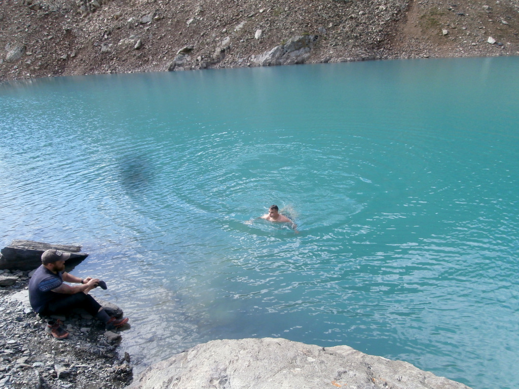 За озером видна гора Юбилейная (3900). Желающие могли бы туда подняться. Но среди нас таковых не нашлось.