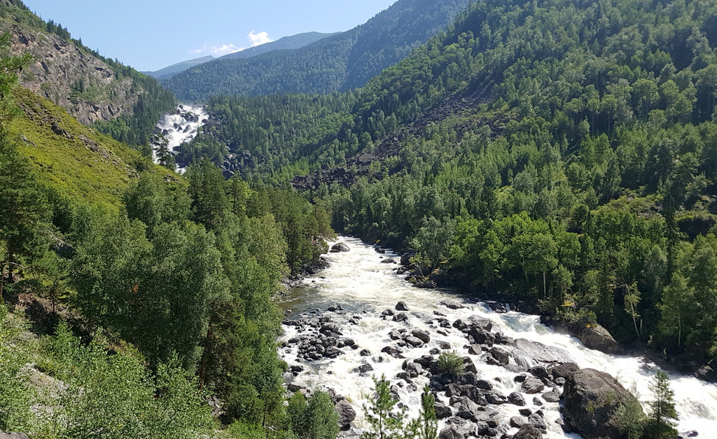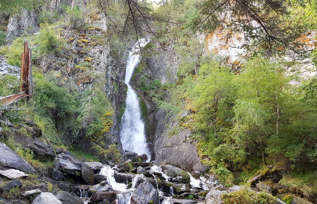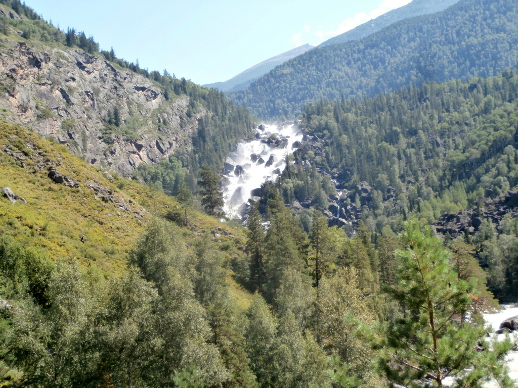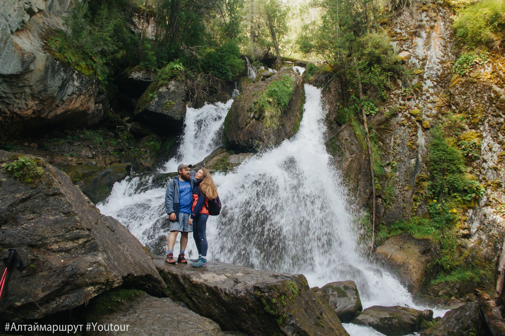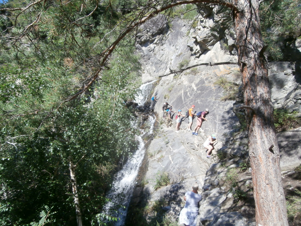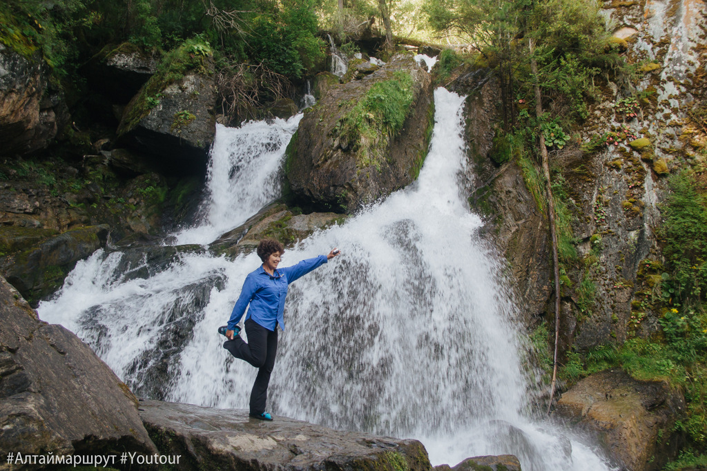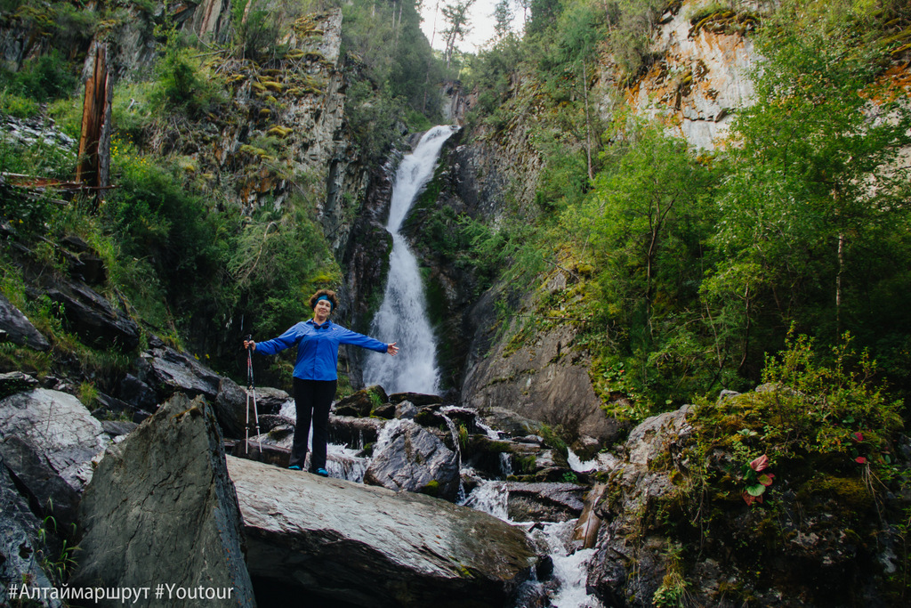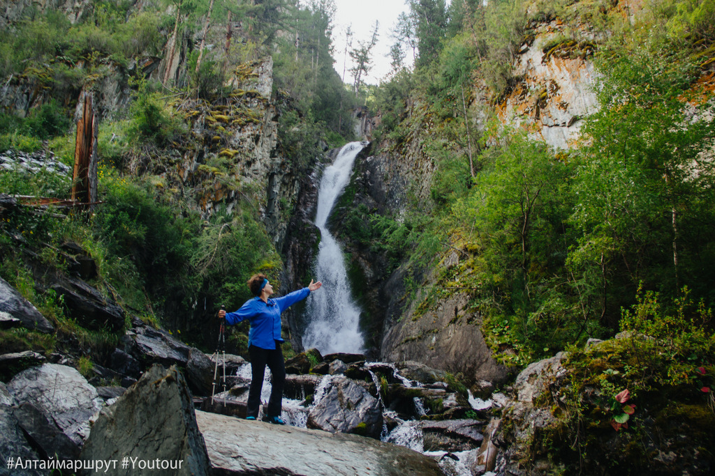 По программе тура на водопады Карасу мы должны были идти пешком. Трек 12 км. Это бы случилось, если бы вся группа продолжала 13-дневный тур «Планета Алтай». Но поскольку половина группы отправлялась сегодня домой, и их отъезд был назначен на полдень, на водопады Карасу мы поехали на машине.
